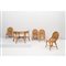 Tavolo da pranzo circolare in rattan, piano con tessuto Valentino, vetro, quattro sedie in rattan con decori verdi.