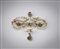 . - Spilla in oro ed argento con cinque piccoli diamanti e rosette.