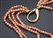 Collana di corallo rosa composta da n. 4 fili con chiusura a moschettone in oro giallo 750-1000. Peso lordo gr 94,40. . . Collana di pallini di corallo rosa. Chiusura a moschettone in oro giallo 750/1000.