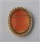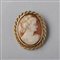 - Spilla in oro giallo 750-1000 con bordo intrecciato con cammeo raffigurante mezzo busto di donna. .