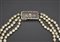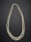 Collana di perle coltivate tre fili. . . Collana di perle coltivate composta tra n. 3 fili di perle dal diametro tra mm 4.00- 7.50 con chiusura in oro bianco basso titolo, piccoli rubini e piccoli diamanti taglio huit huit