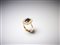 . Anello in oro giallo 750/1000 con contorno di diamanti tondi taglio a brillante di 1,00 ct circa H/I vs e zaffiro blu centrale taglio a cuscino di 3,00 ct circa. . -. . HI VS.