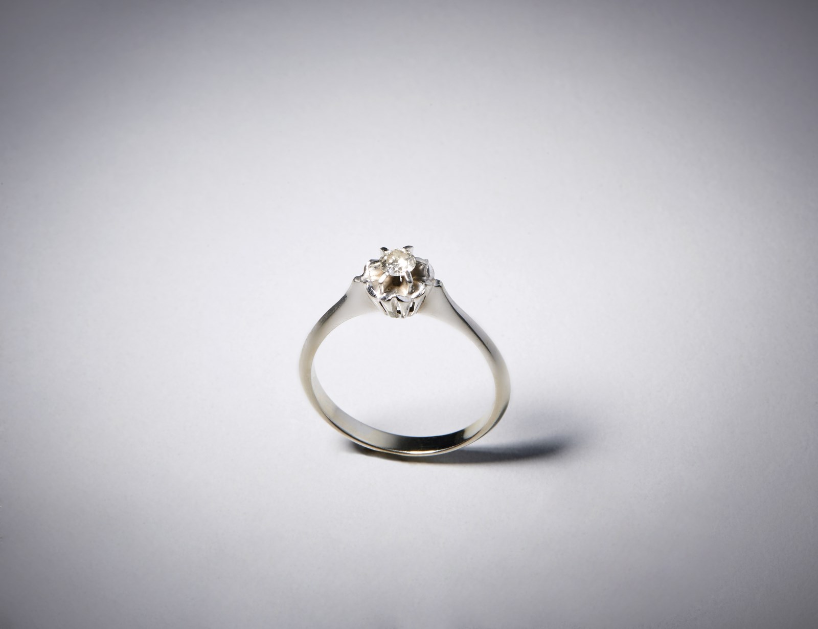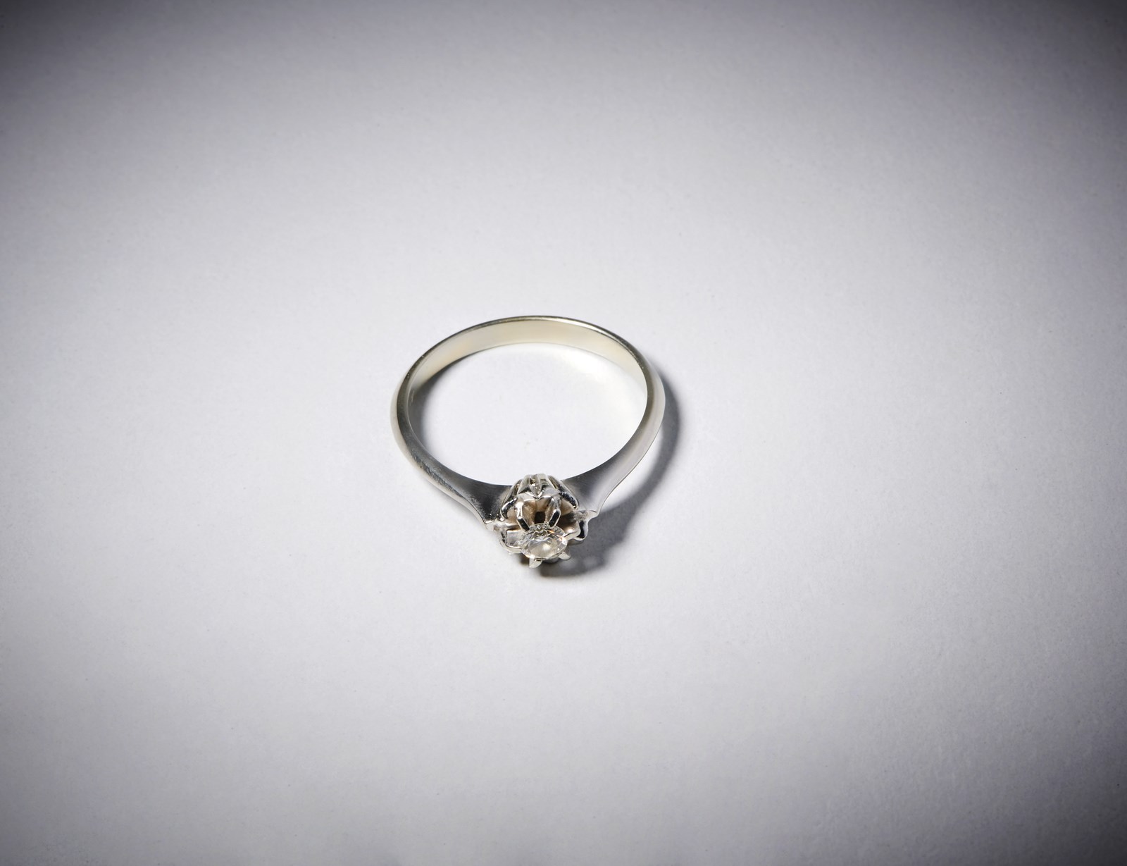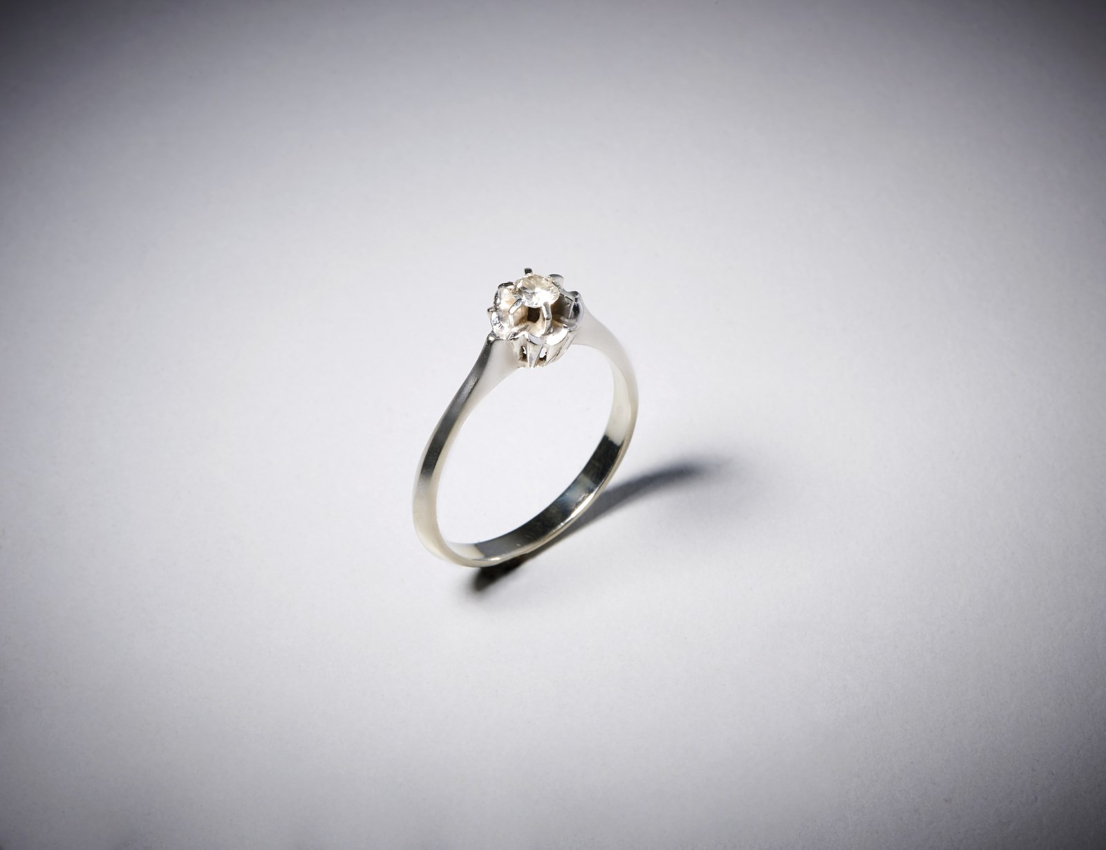 . Anello in oro bianco 750/1000 con diamante taglio a brillante di circa 0,20. . . Peso lordo 3,61 gr