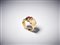 . Anello a "fascia" in oro giallo 750/1000 con rubino centrale ovale di circa 0,35 carati con contorno di diamanti bianchi taglio a brillante di circa 0,40 carati circa. . . Peso lordo: 6,60 grammi
