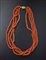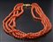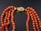 . - Torchon di quattro fili di i corallo rosso sferici con chiusura in oro giallo 750/1000 e piccoli diamanti bianchi.