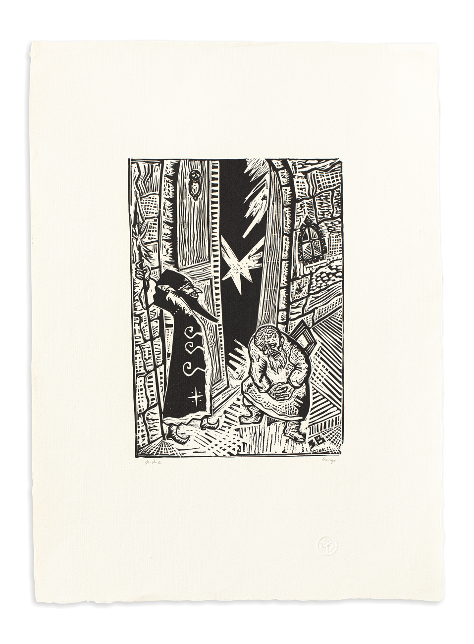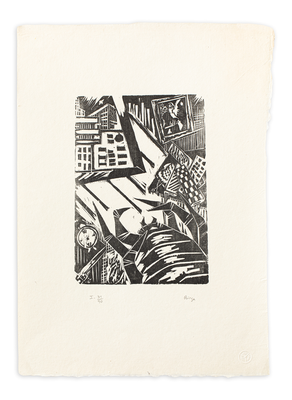 1 xilografia cm 36x47, recante firma e numerazione a matita al fronte