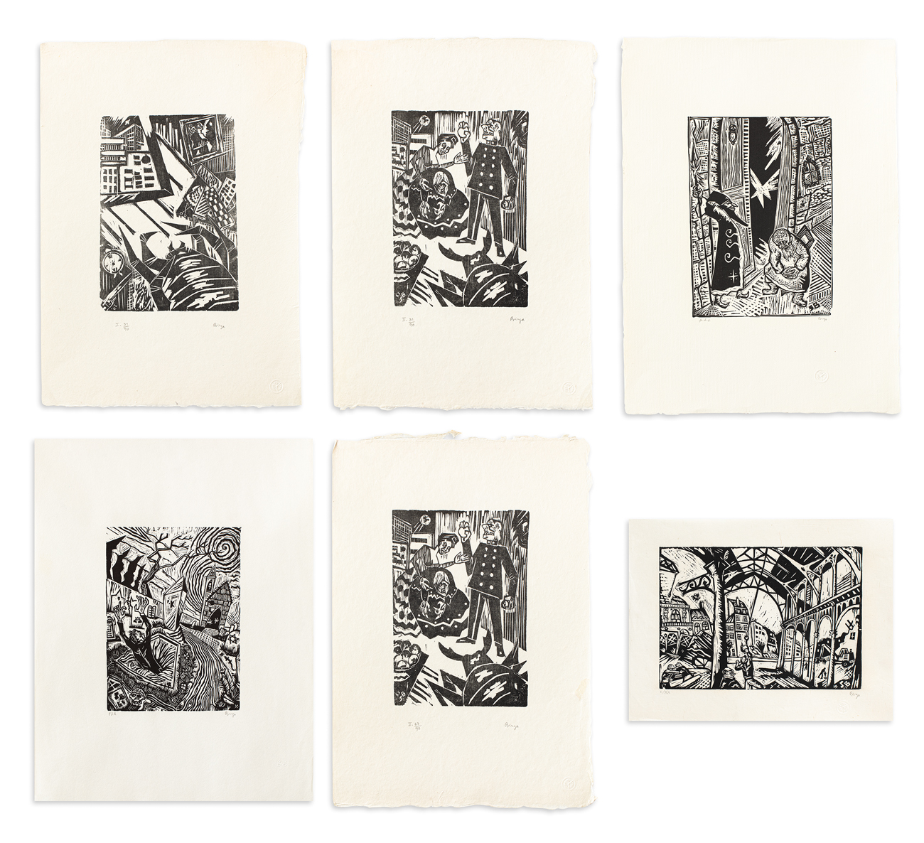 5 xilografie cm 65x47, ciascuna recante firma e numerazione a matita al fronte