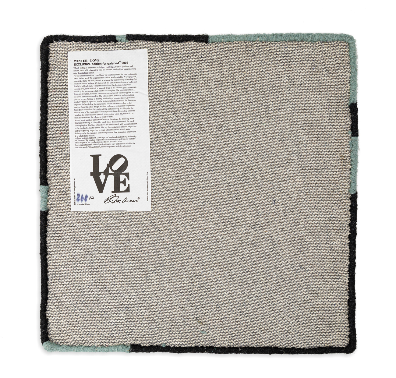 Etichetta Robert Indiana con numerazione (Esemplare 264/∞) al retro