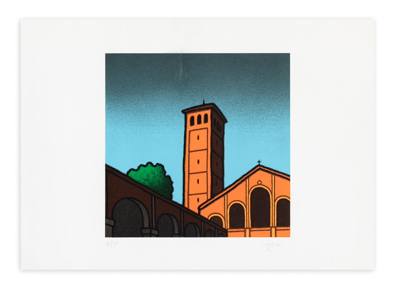 Firma e numerazione (Esemplare 75/150) a matita al fronte