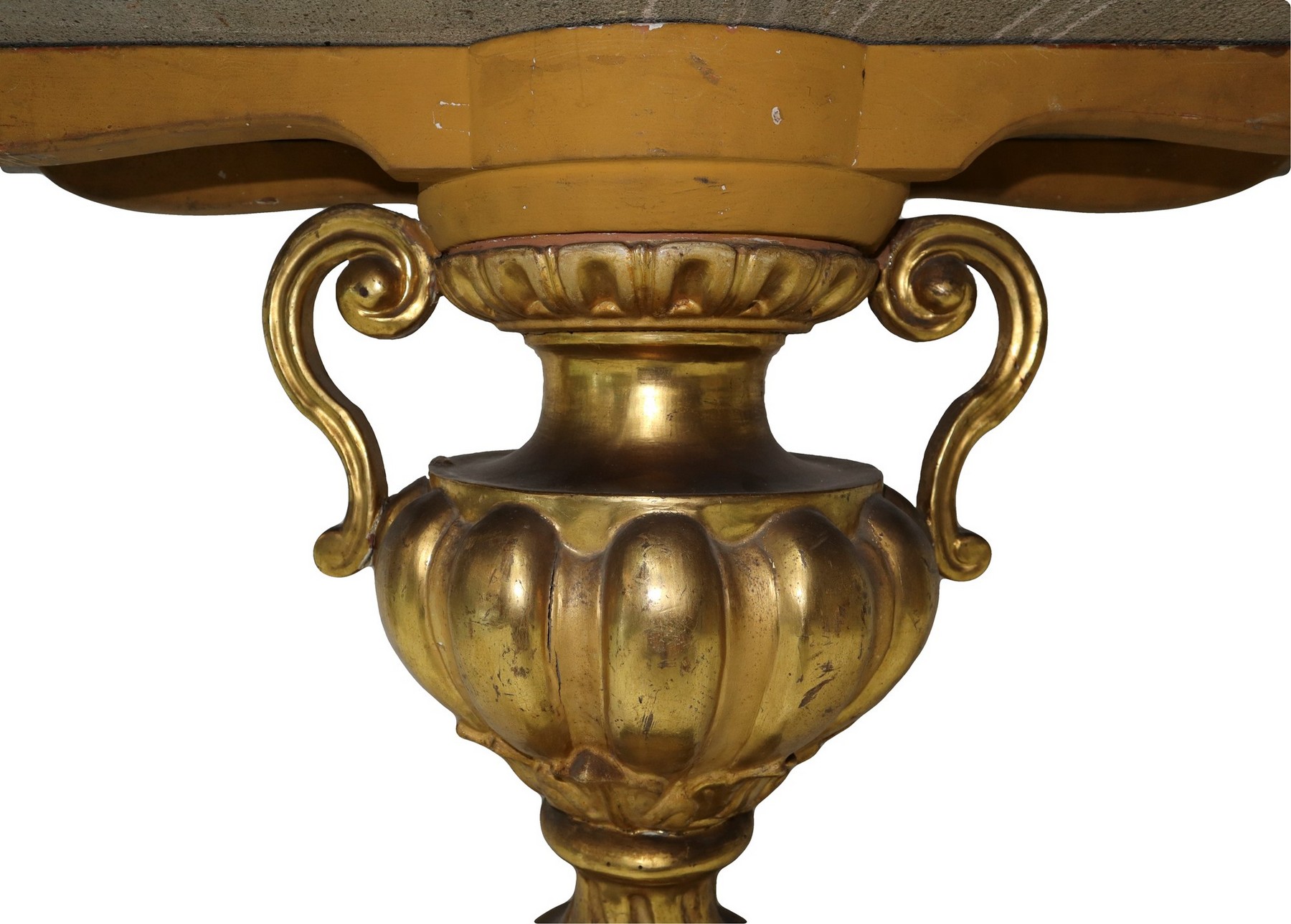 Lotto 43 | Tavolinetto assemblato con base a forma di vaso biansato in legno dorato a foglia e piano in marmo lastronato, 18° secolo base, non-contemporary top