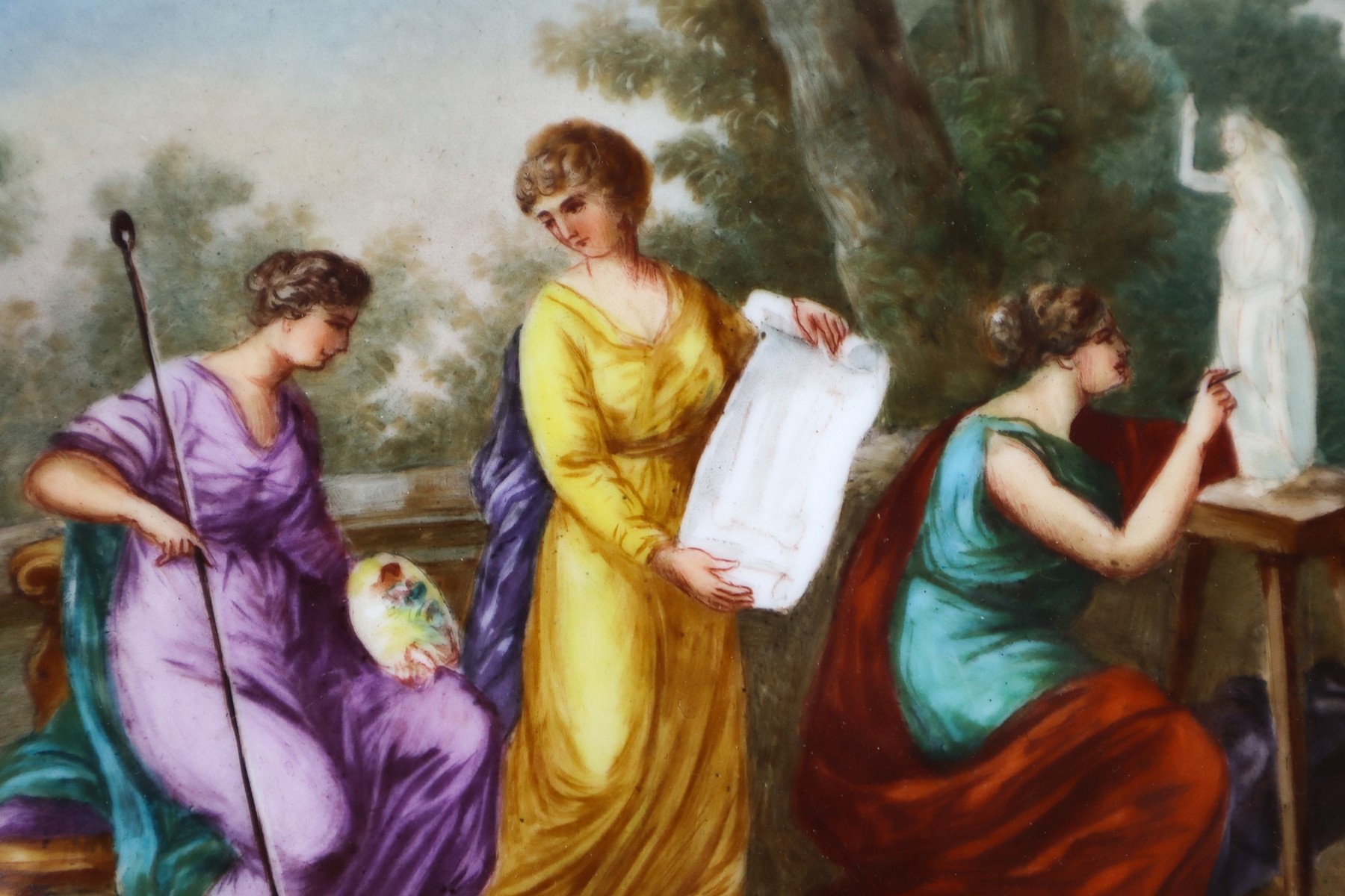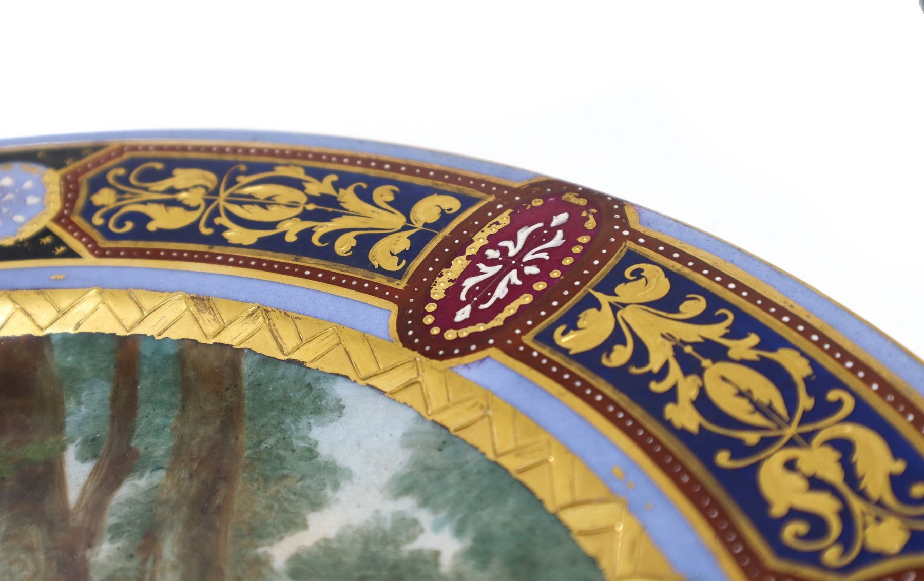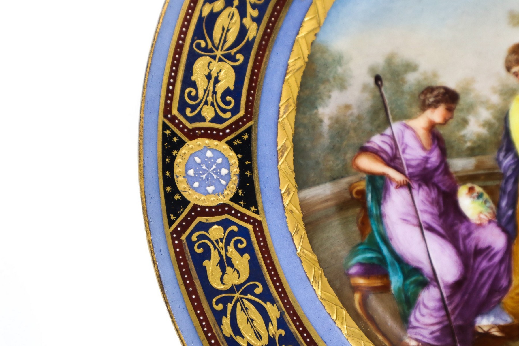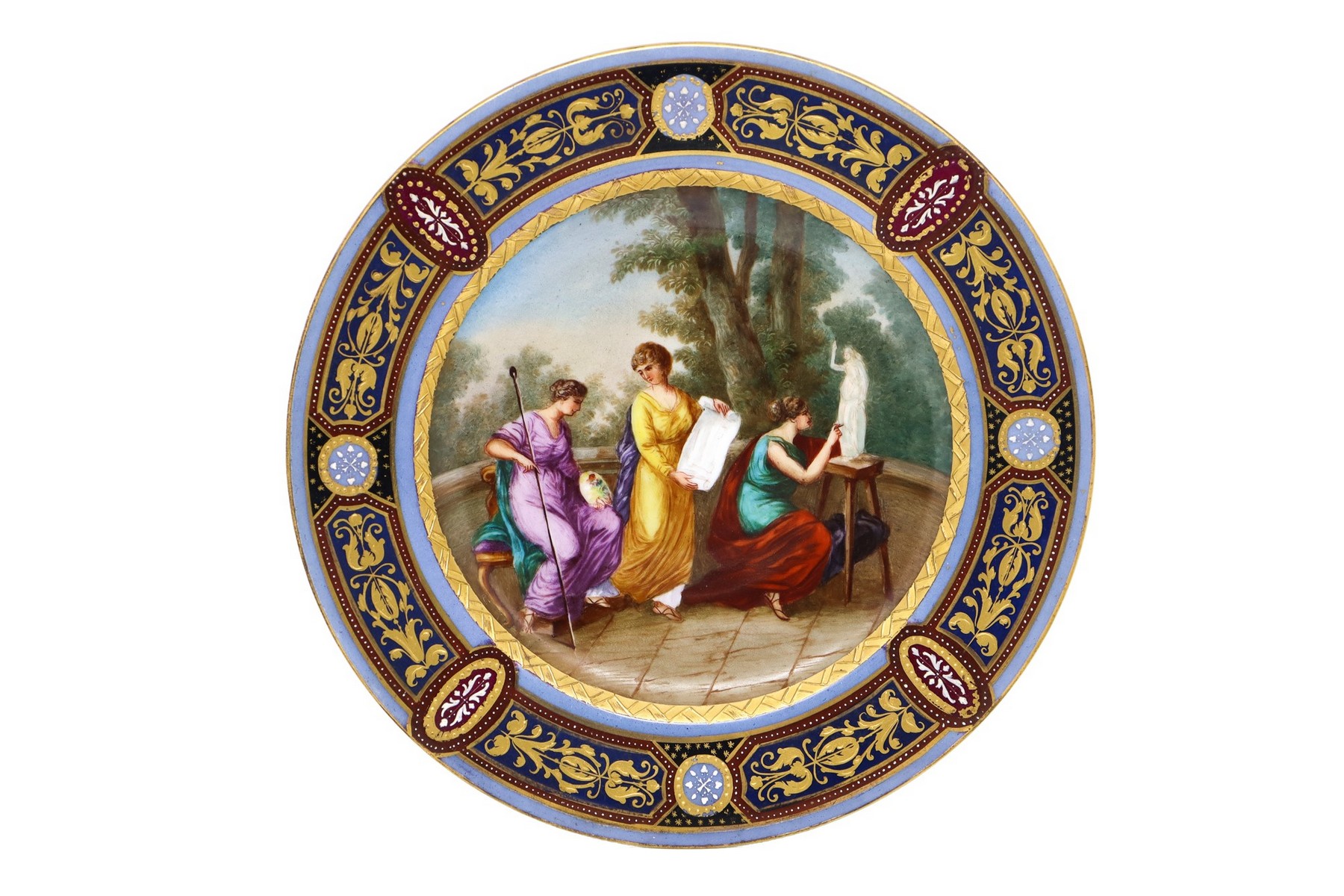 Antico piatto in porcellana manifattura Vienna dipinto a mano e decorato in oro, 19° secolo