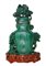 Bruciaprofumi in malachite con base in legno H cm 18, base in legno cm 3 Mlachite Raffigurante Guanin con puttino e rose. presenti piccole sbeccature.