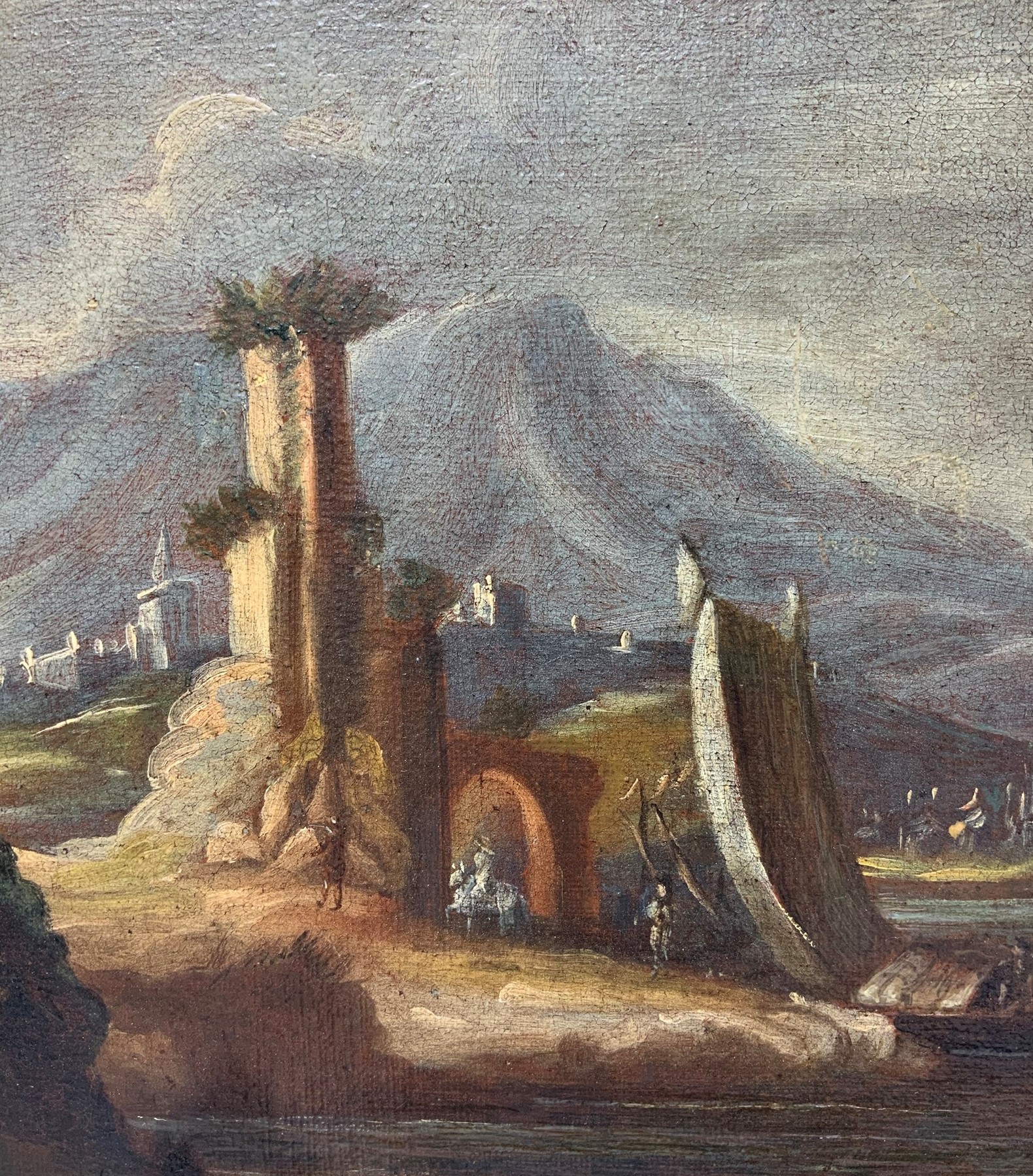 Navi attraccate al porto con personaggi, XVIII secolo Cm 77x102, in cornice 100x123