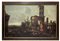 Torre con ruderi architettonici e personaggi, XVIII secolo Cm 61x94, In cornice cm 74x107. Dipinto ad olio su tela