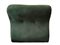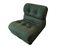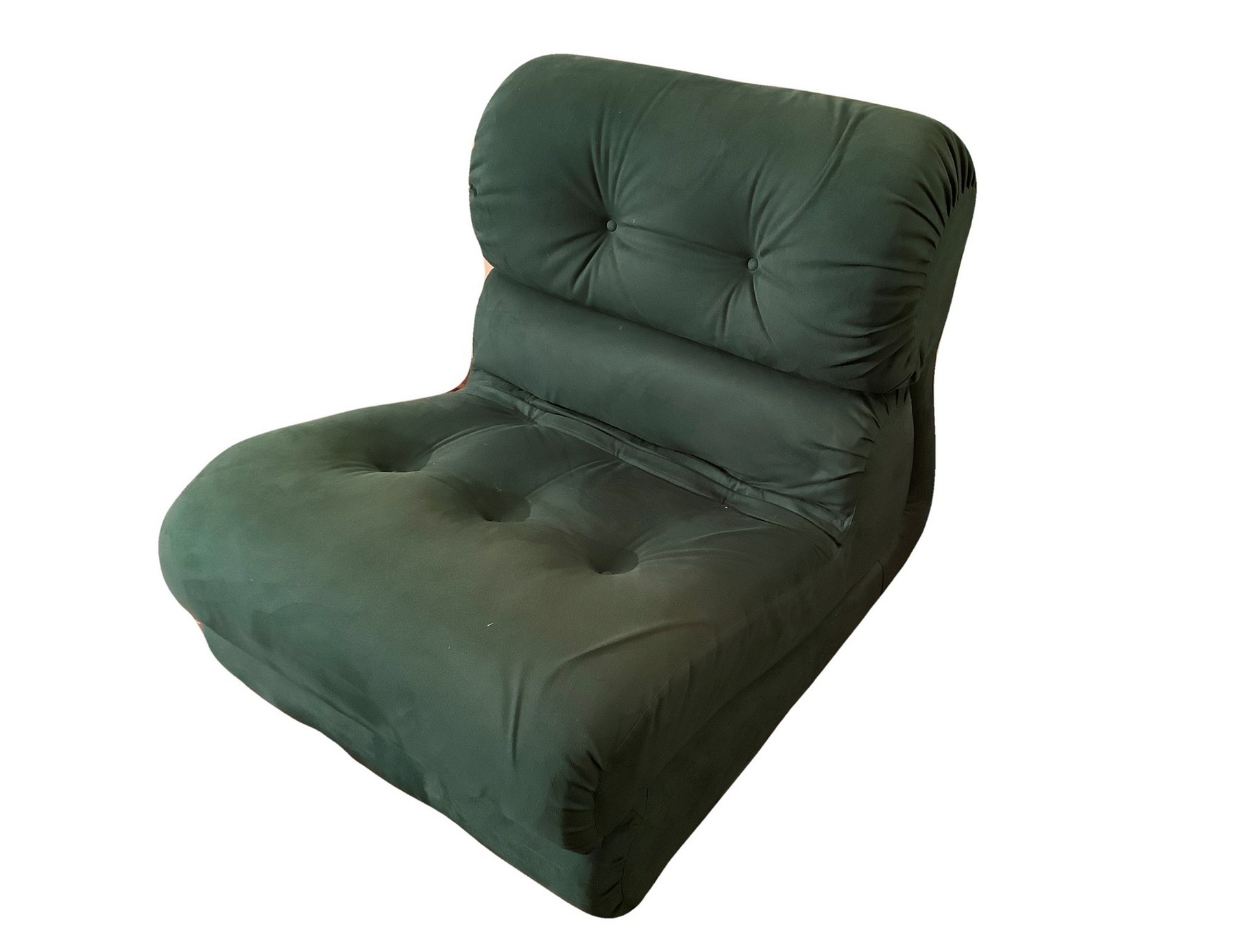 Produzione italiana nell stile di Mimo Padova, divano modulare a 5 elementi di cui uno angolare 240x75 cm, poltrona singola 70x75 cm, angolare completo a cinque elementi diagonale 360x75 cm, modulo angolare 125x75 cm Struttura in legno, rivestimento in tessuto nei toni del verde. Segni di usoStruttura in legno, rivestimento in tessuto nei toni del verde. Segni di uso