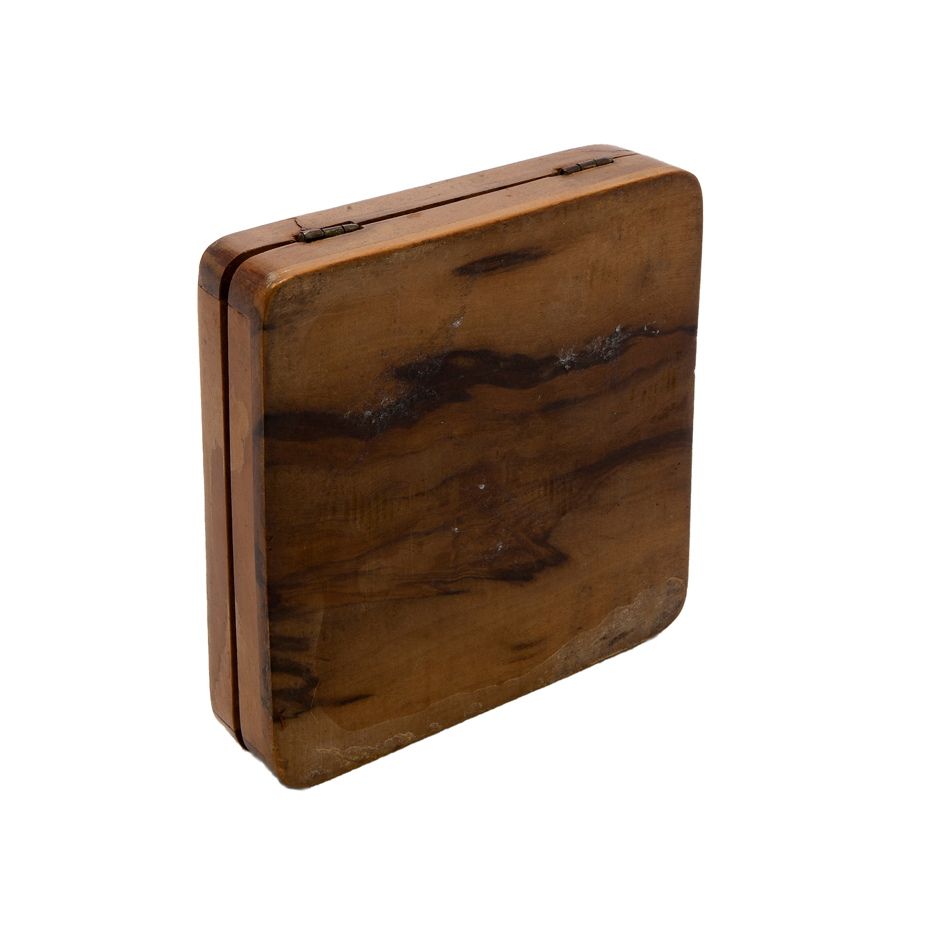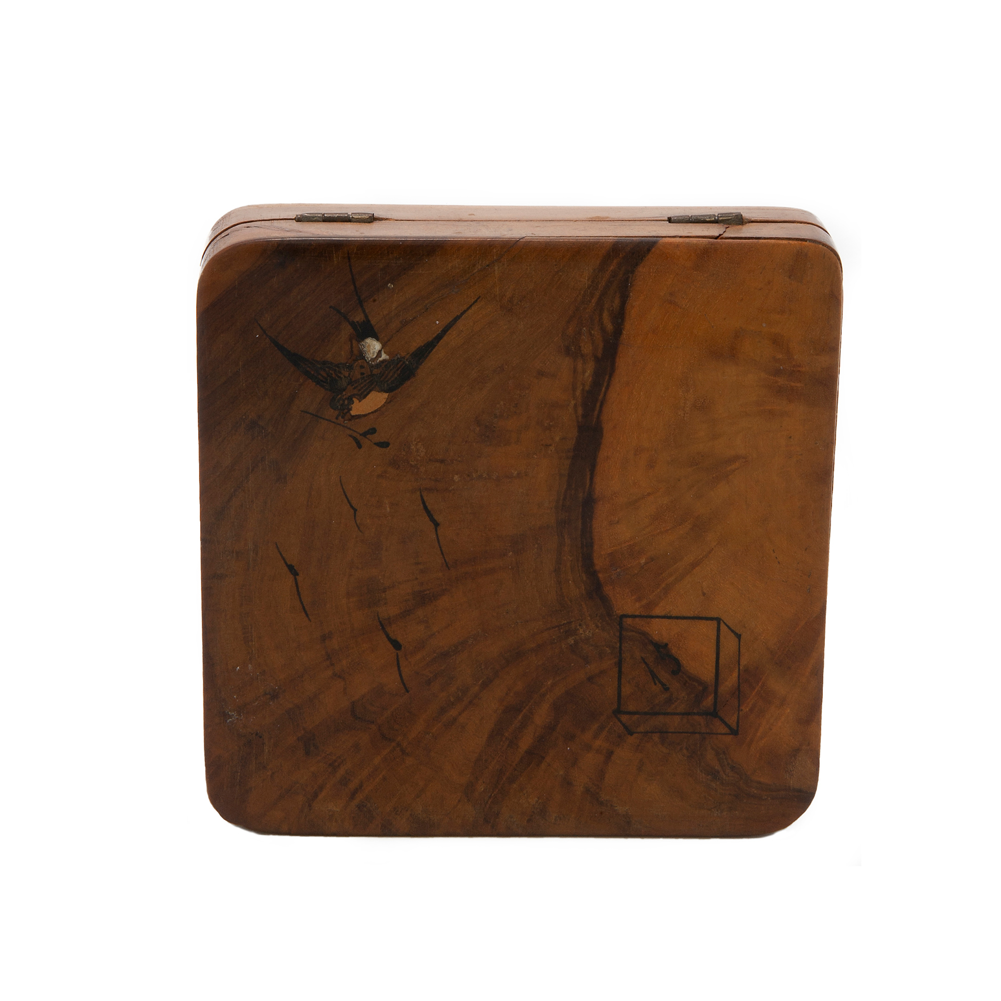 Un gioco in legno Interamente manufatto in legno di ulivo, contiene all'interno 15 tasselli numerati in legno. Decorato nella parte esterna a motivi di uccelli Dimensioni 2x10,5x10,5 cm.