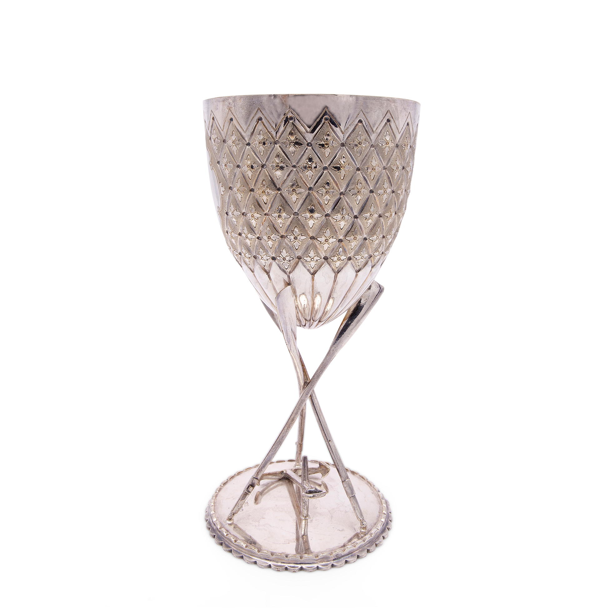 Coppa con tre remi e ancora Presenti marchi sulla base identificanti la produzione Dimensioni 21,5x10,5 cm.