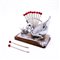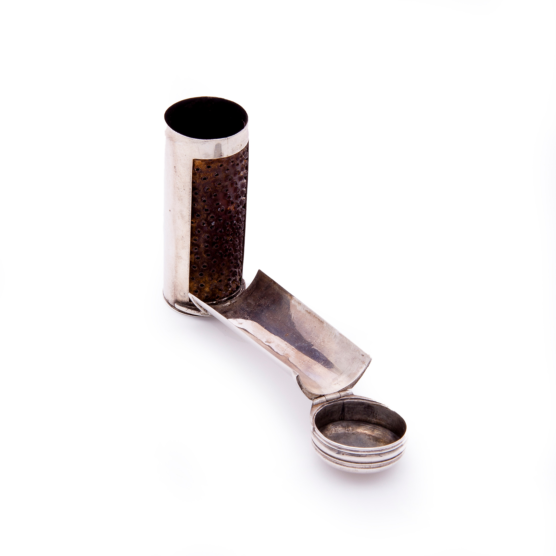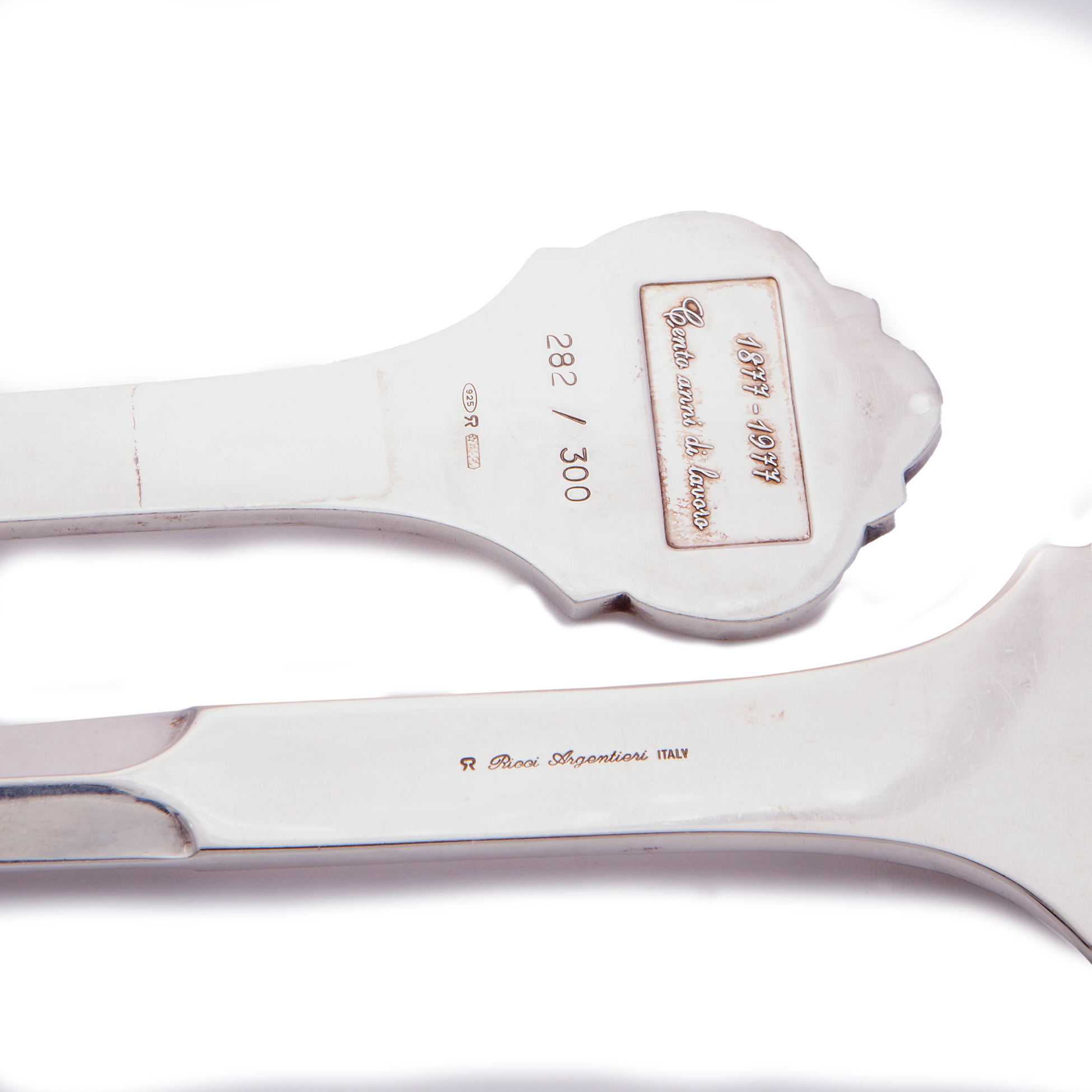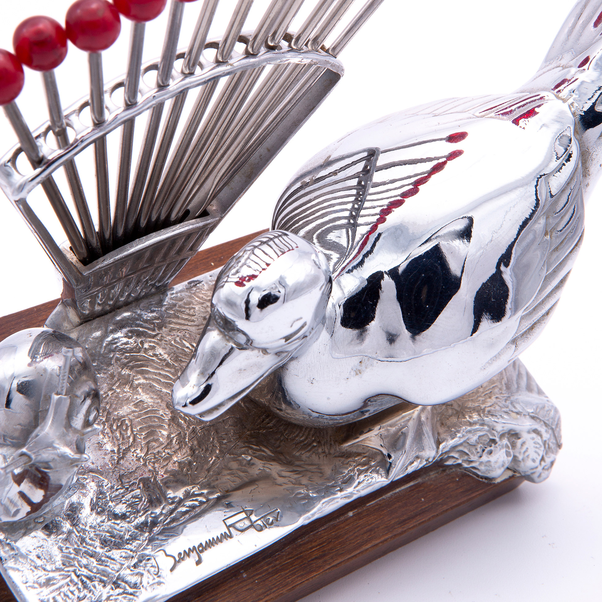 Piccolo set da tavola in argento Benjamin Rabier (1869-1939), Porta bastoncini per aperitivo in metallo su base in legno, due reggi carne in argento 'presente marchio Ricci Argentieri Italy 925', gr. 250. Grattugia per noce moscata in argento di fine Set