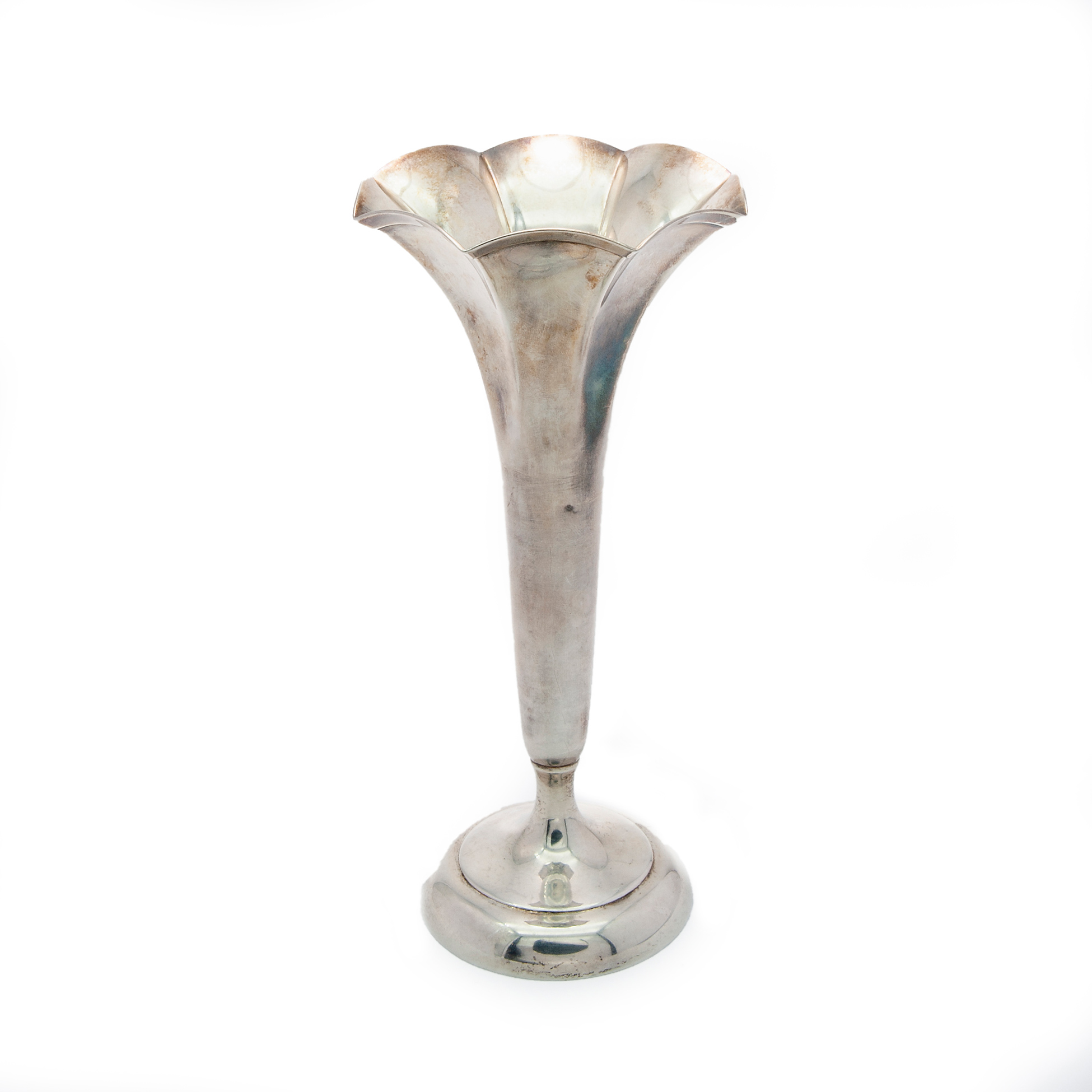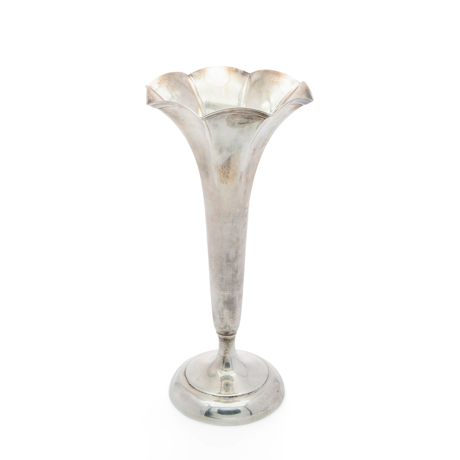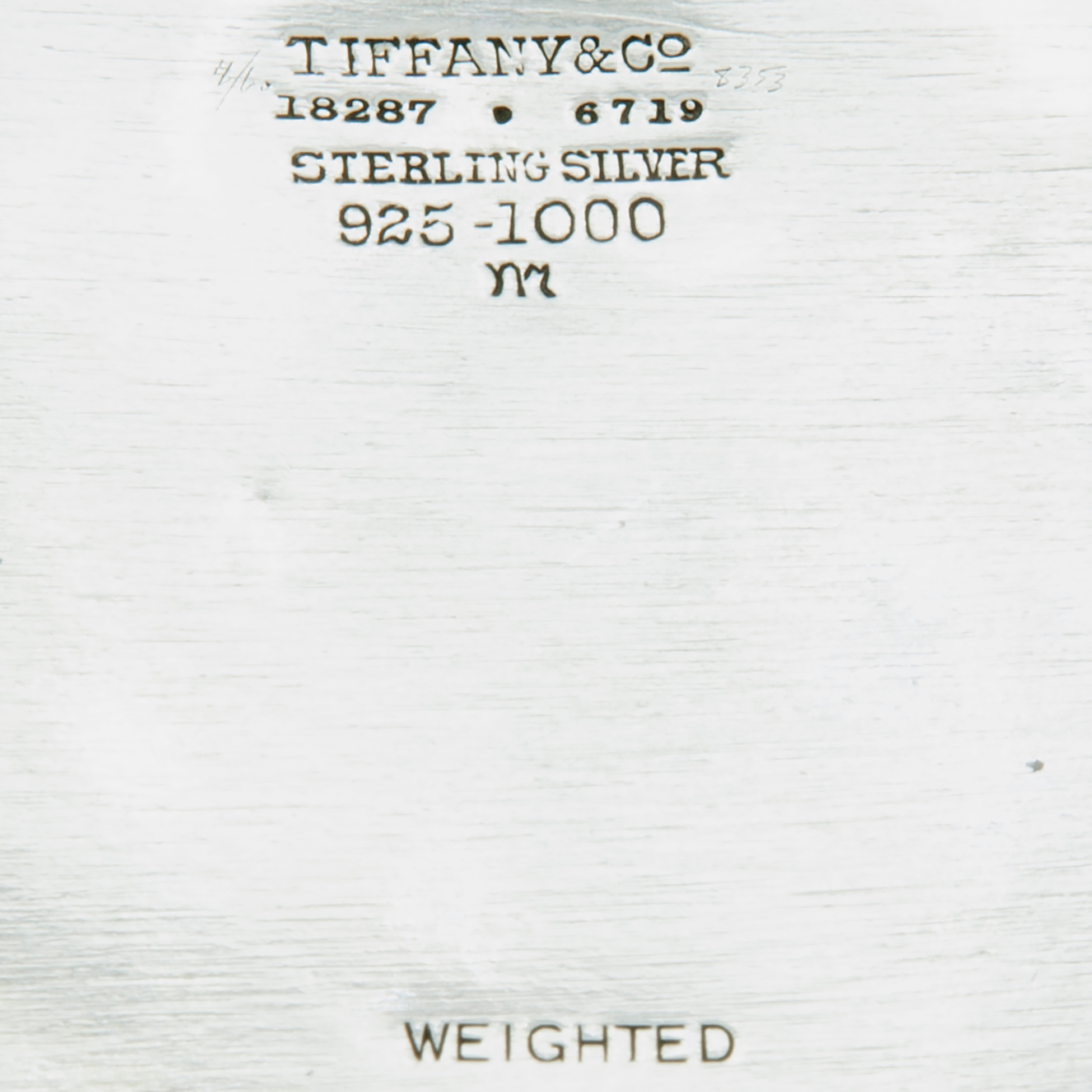 Fioriera Liberty americana 'Tiffany & Co' Presenti sul fondo i marchi identificanti la produzione: 'Tiffany&Co - 18287 - 6719 - Sterling silver 925-1000 - weighted', peso complessivo gr. 220 Dimensioni 17,5x8,5 cm.