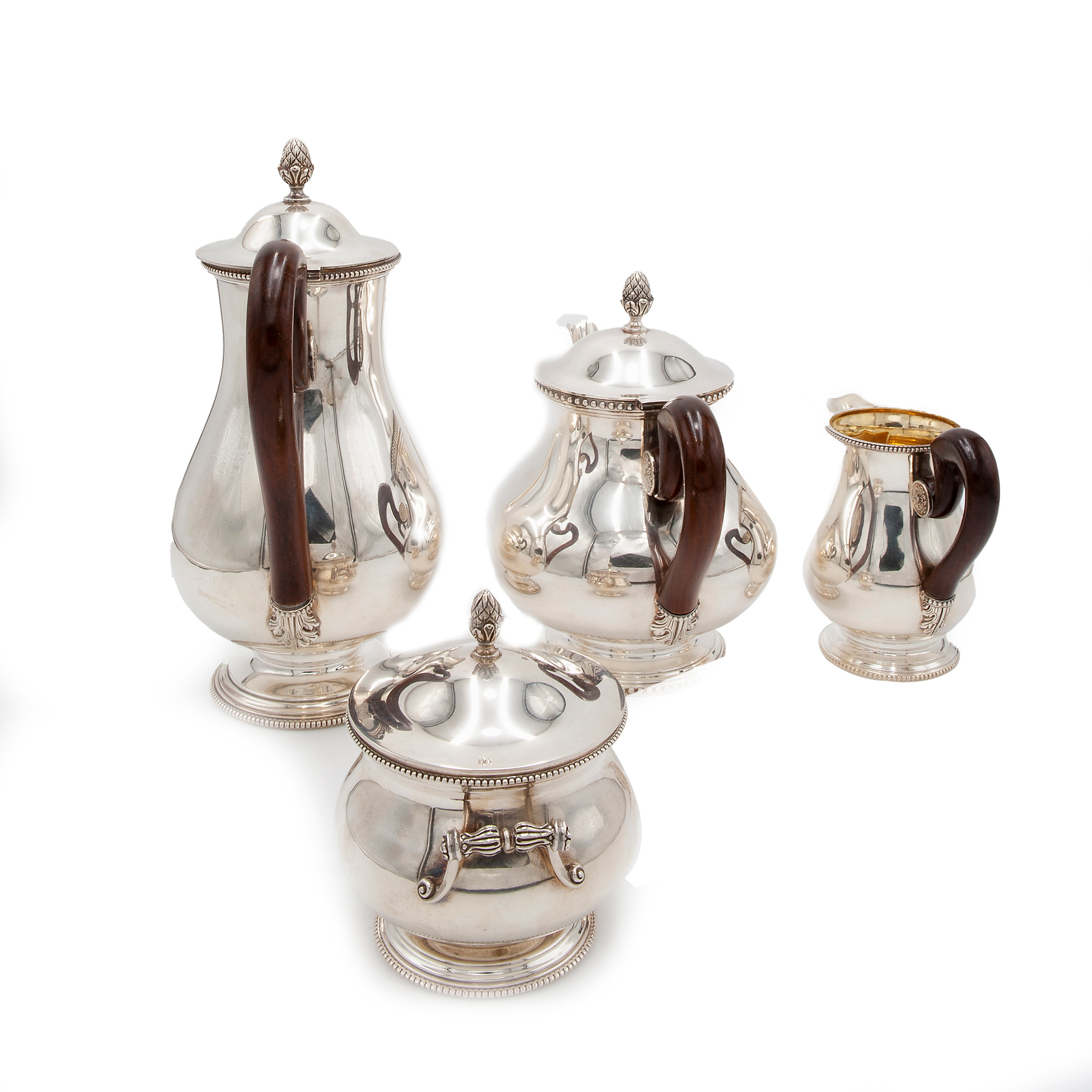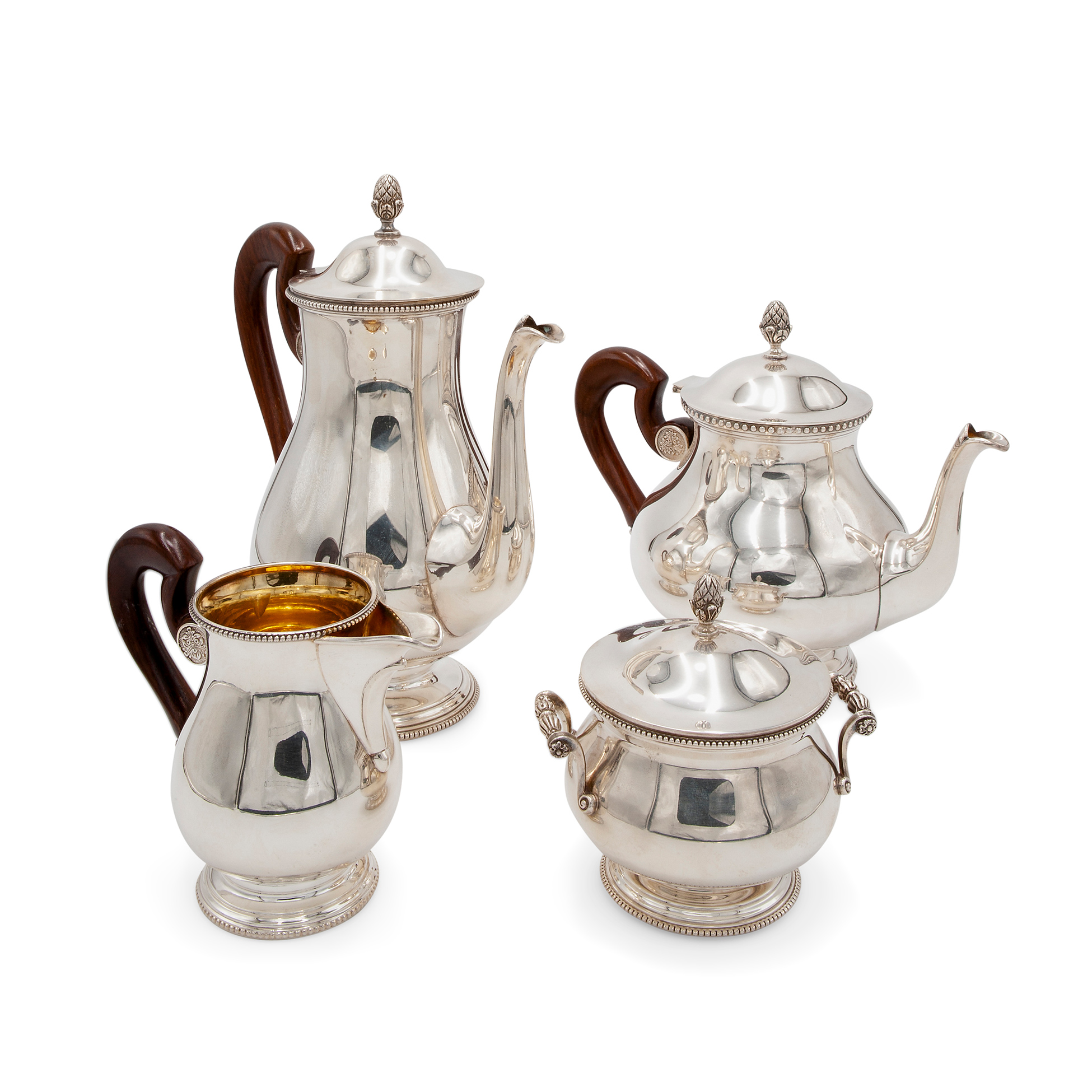 Servizio da the in argento, Pampaloni Firenze Il servizio è realizzato in argento 925 ed è composto da teiera, caffettiera, lattiera e zuccheriera; peso complessivo gr. 2050 Dimensioni complessive max 25x23x14 cm.
