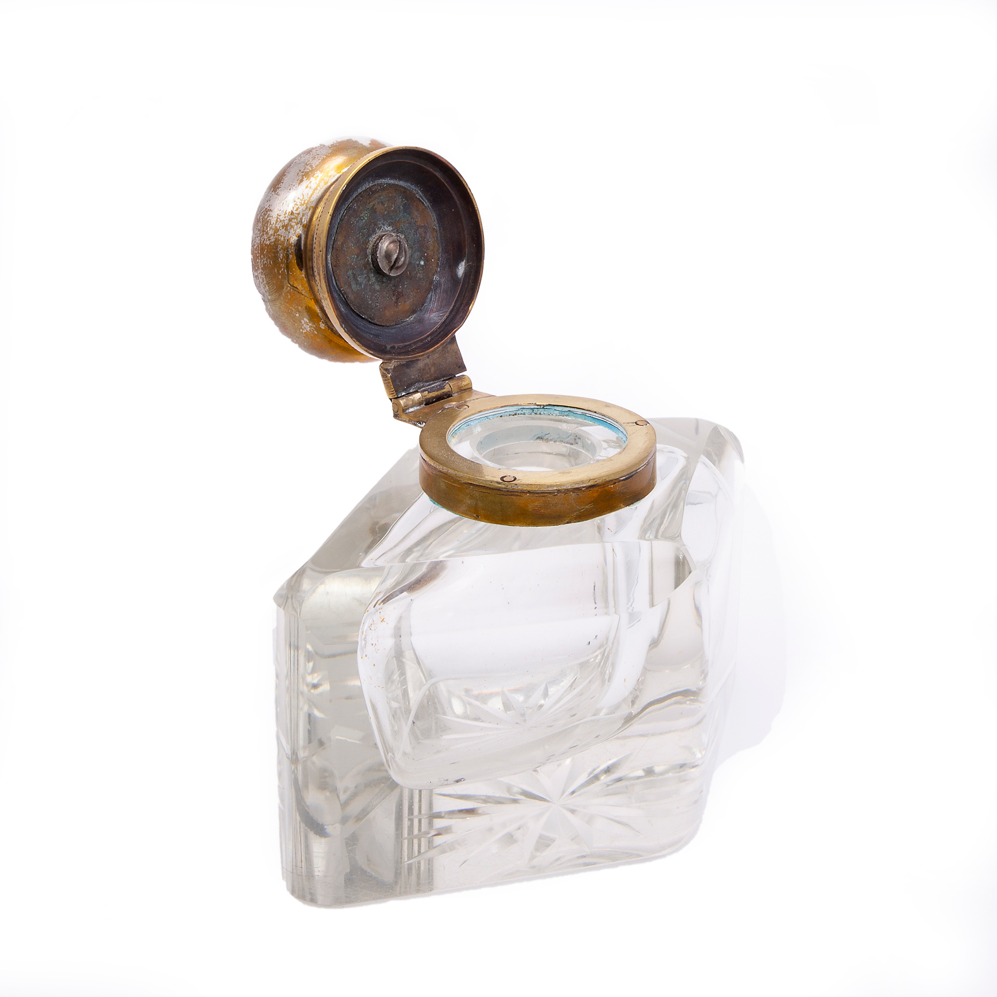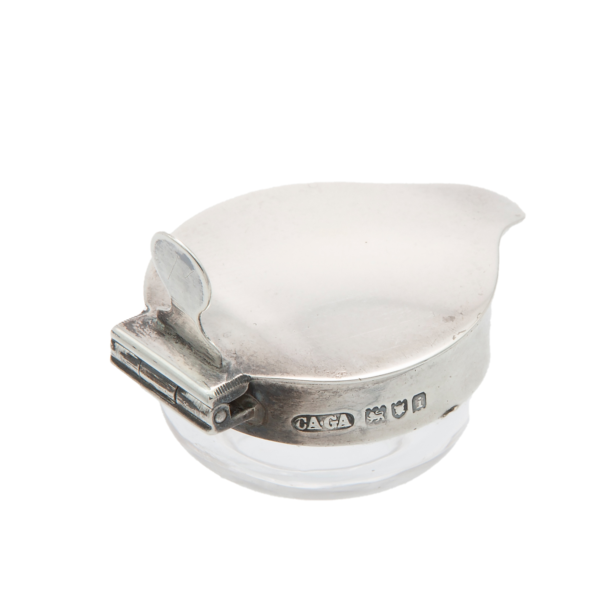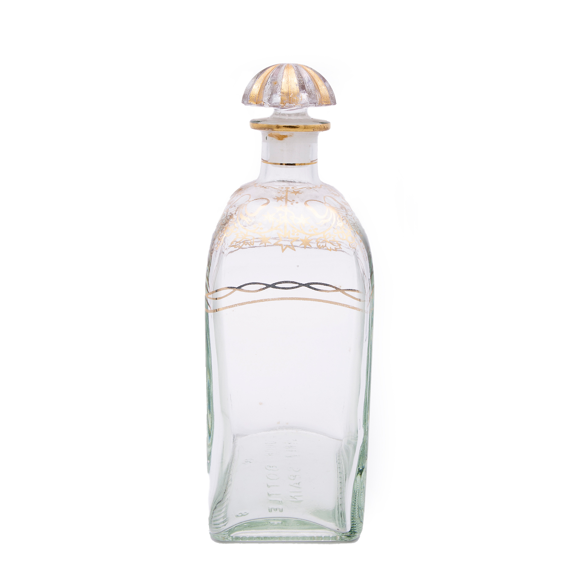 Set di eleganti flaconi in vetro Gruppo composto da: bottiglia da liquore in vetro, riporta sul fondo la scritta in rilievo 'Liquor Bottle Jerez Spain - CR'. Piccola caraffa in vetro e argento, Londra 1924 circa; Presente marchio 'Asprey London - 7002' a