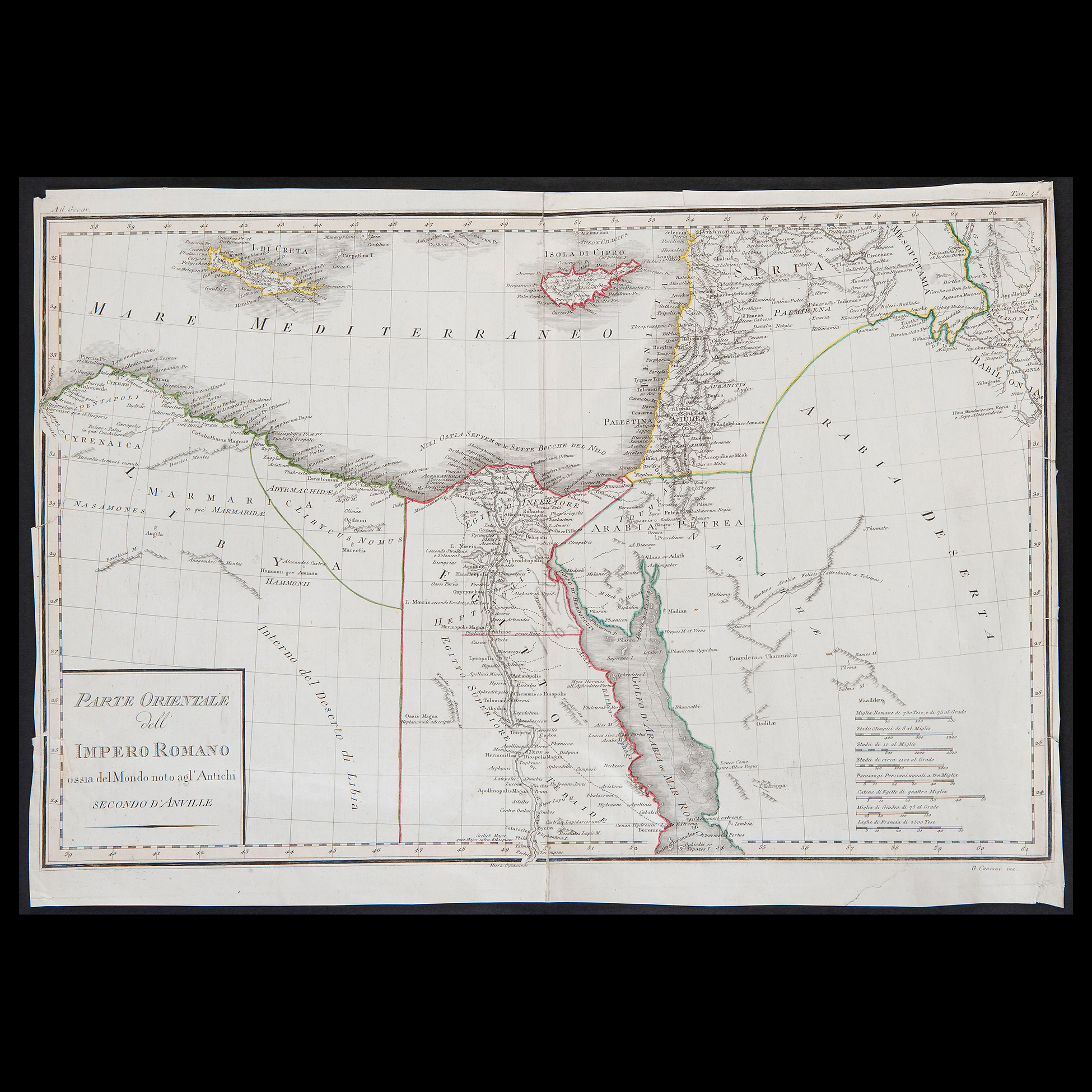 Giuseppe Caniani (1773 - 18..?), 'Parte orientale dell'Impero Romano', Italia prima metà del XIX secolo Carta geografica realizzata su modello di Jean-Baptiste Bourguignon d'Anville (Parigi 1697 – 1782), reca in calce la firma 'G. Caniani inc.', present