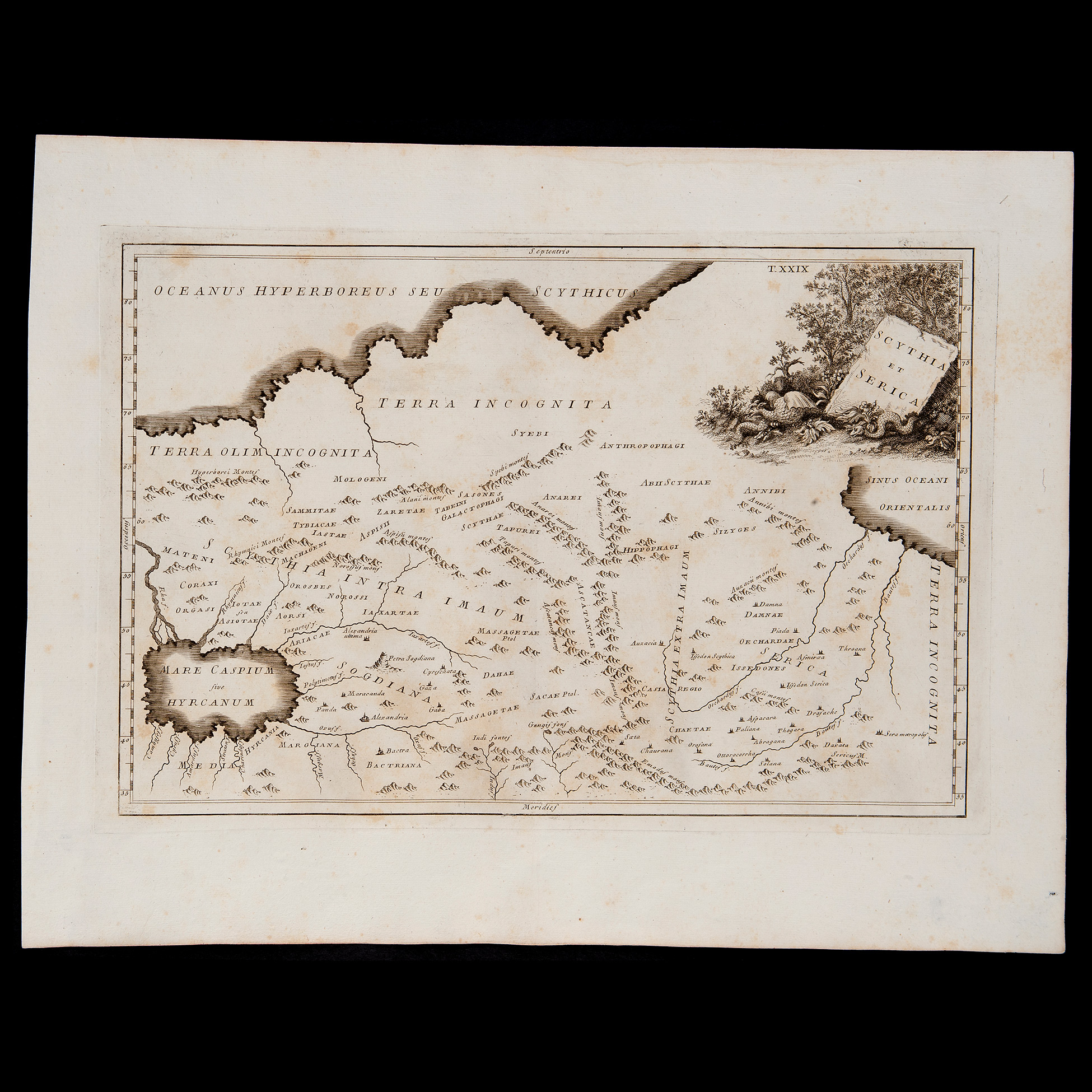 Gruppo di tredici carte geografiche miste, prima metà del XVIII secolo Serie di incisioni su carta vergellata e filigrana raffiguranti vari paesi del mondo: 'Germania antiqua', 'Delta del Nilo, Egitto', 'Africa propria', 'Africa interior', 'Vindelicia Rh