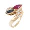 ANELLO in oro giallo 18 KT con brillanti, rubino e zaffiro