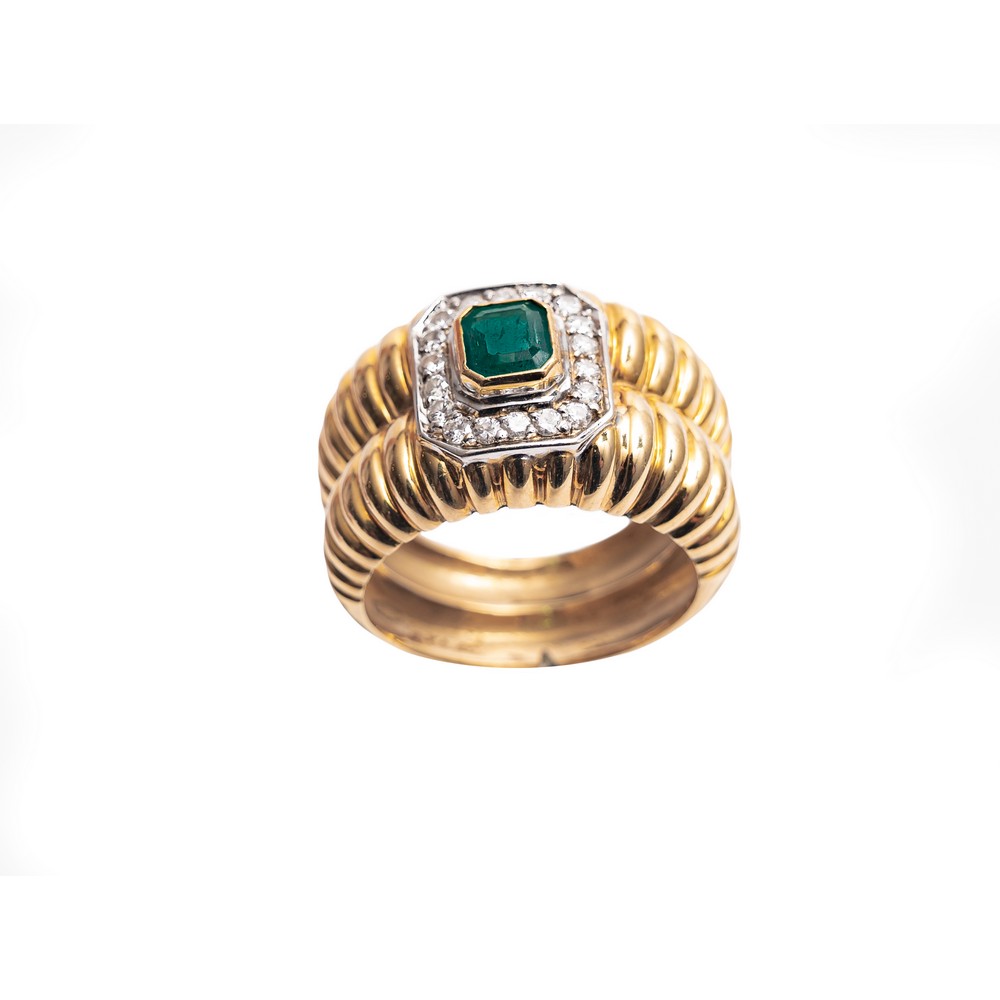 ANELLO in oro giallo 18 KT con brillanti e smeraldo