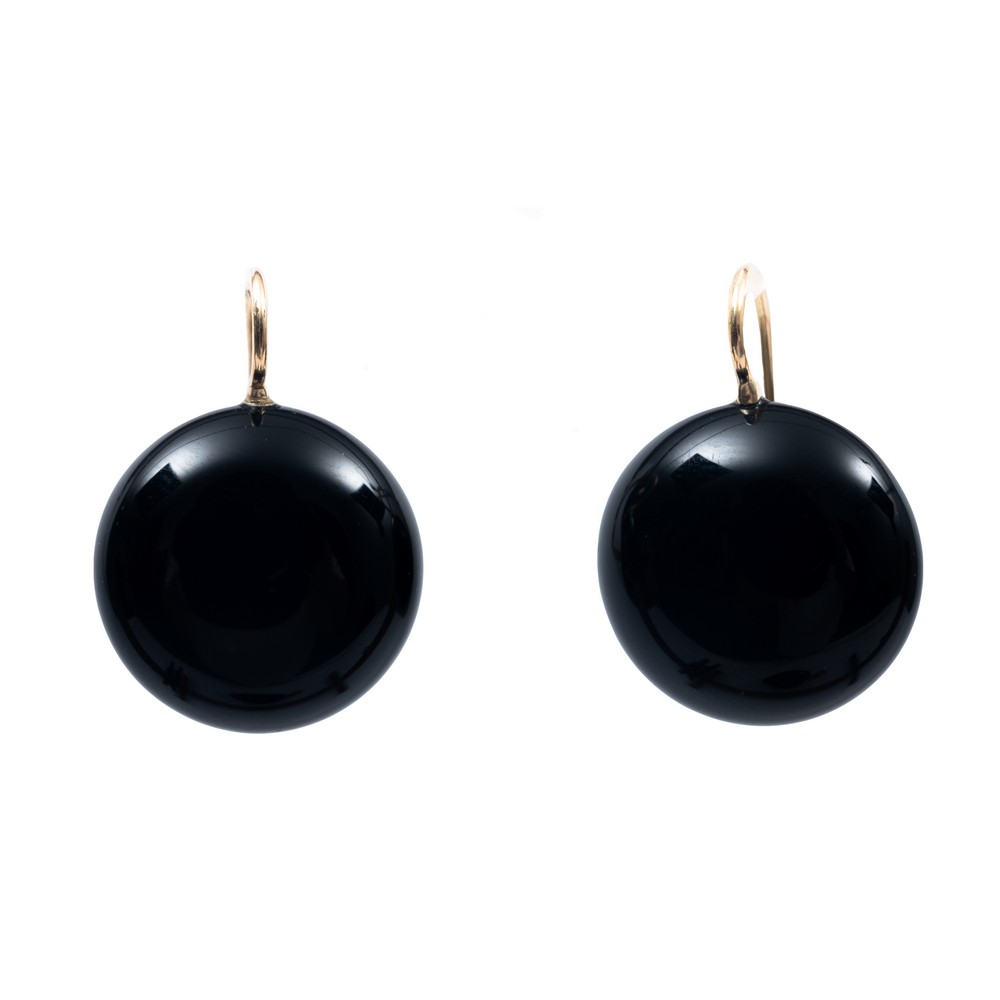 ORECCHINI in oro giallo 18 KT e onice (g. 10.60).