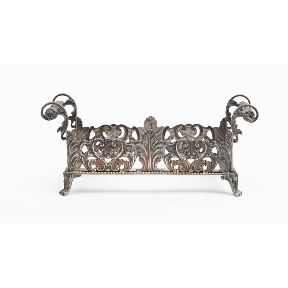 PICCOLO CENTROTAVOLA in argento sbalzato (g. 251) (vaschetta mancante).