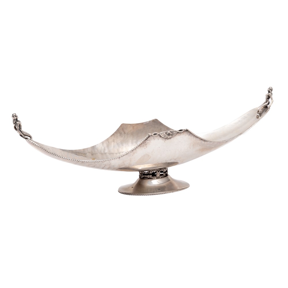 GIATTA in argento con applicazioni in argento raffiguranti Sirene (g. 346) (usure).