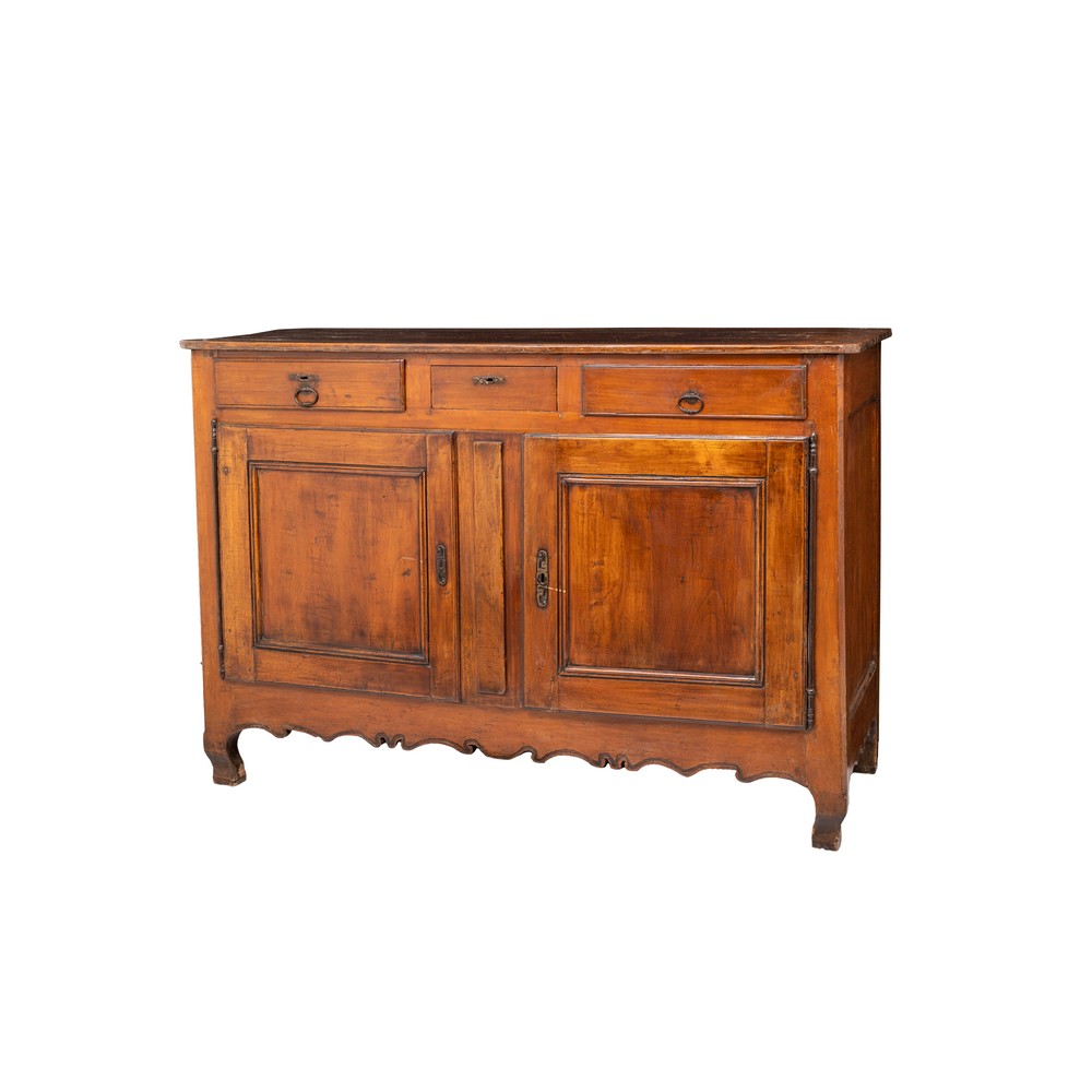 Credenza Provenzale in legno di noce a due ante e tre cassetti.