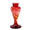 Vaso in vetro decorato a motivo floreale nei toni del rosso, firma alla base.