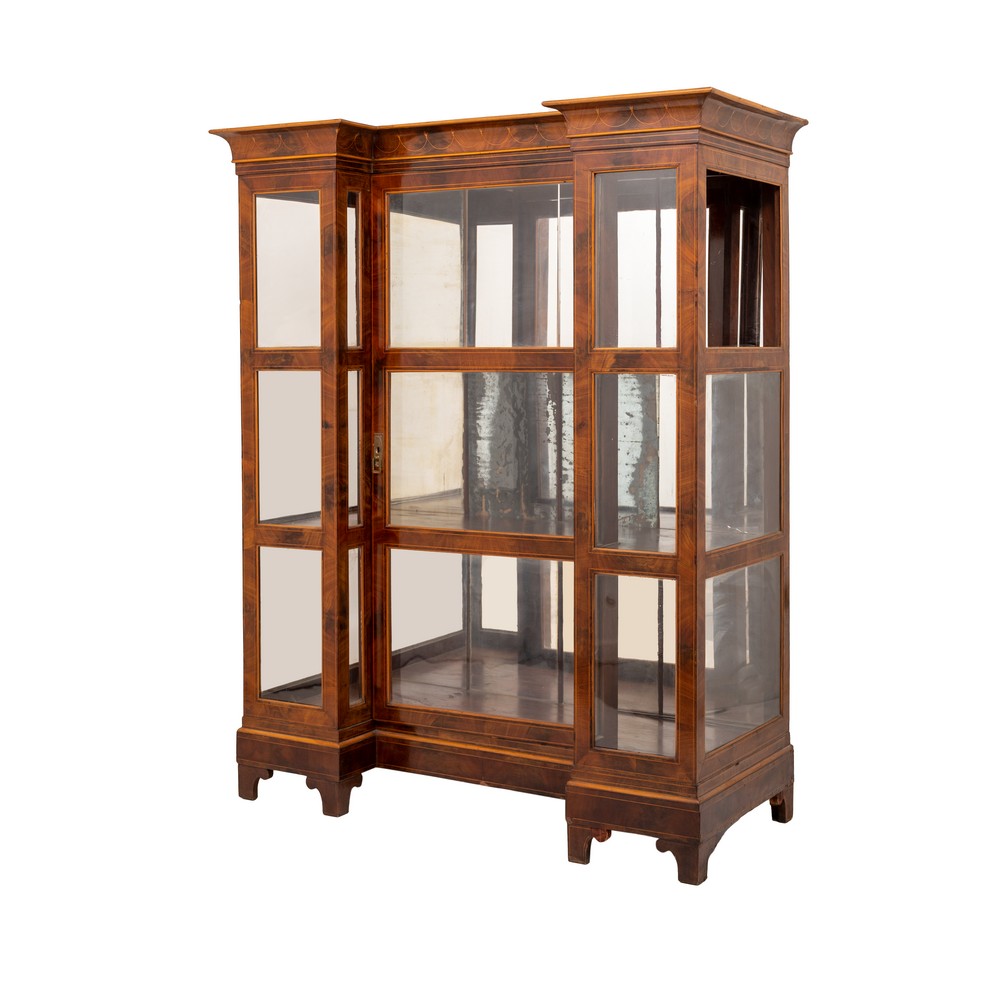 VETRINA Carlo X in mogano e piuma di mogano, perfili in bosso.