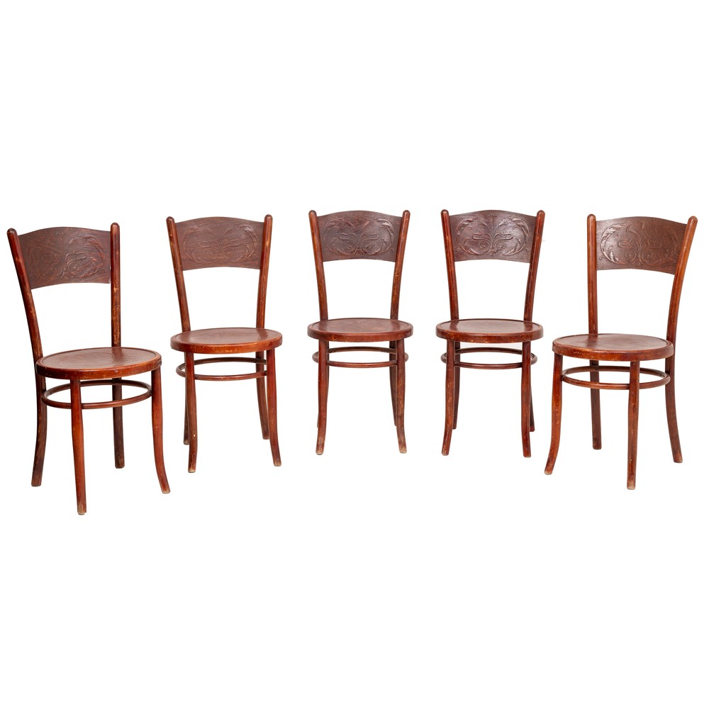 CINQUE SEDIE thonet in faggio curvato a fuoco con seduta e spalliera in legno.