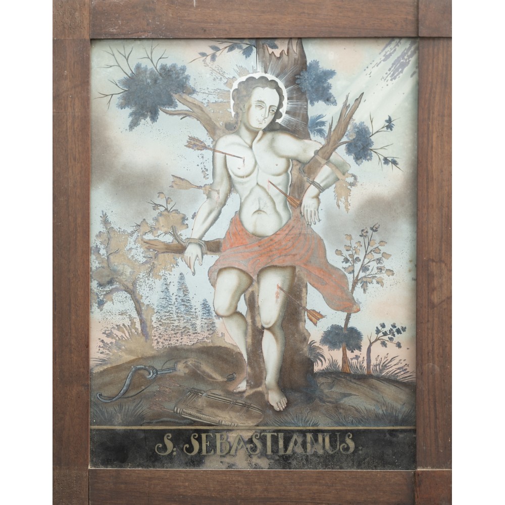 PITTURA SU VETRO raffigurante 'San Sebastiano'