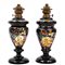DUE LUMI a petrolio in opaline nei toni del celeste decorati a mano (filé ad una boccia).