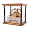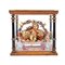 Bambinello in cera con decorazioni in corallo e perline con tre pendenti in oro basso titolo entro teca in legno.