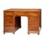 SCRIVANIA a scagno in legno di noce con nove cassetti, tiretto e piano in pelle.