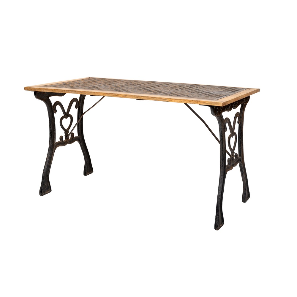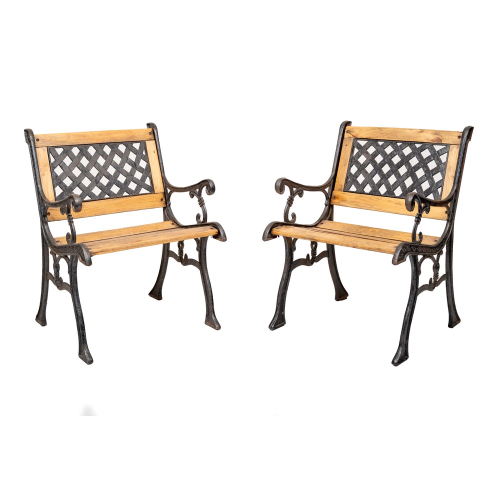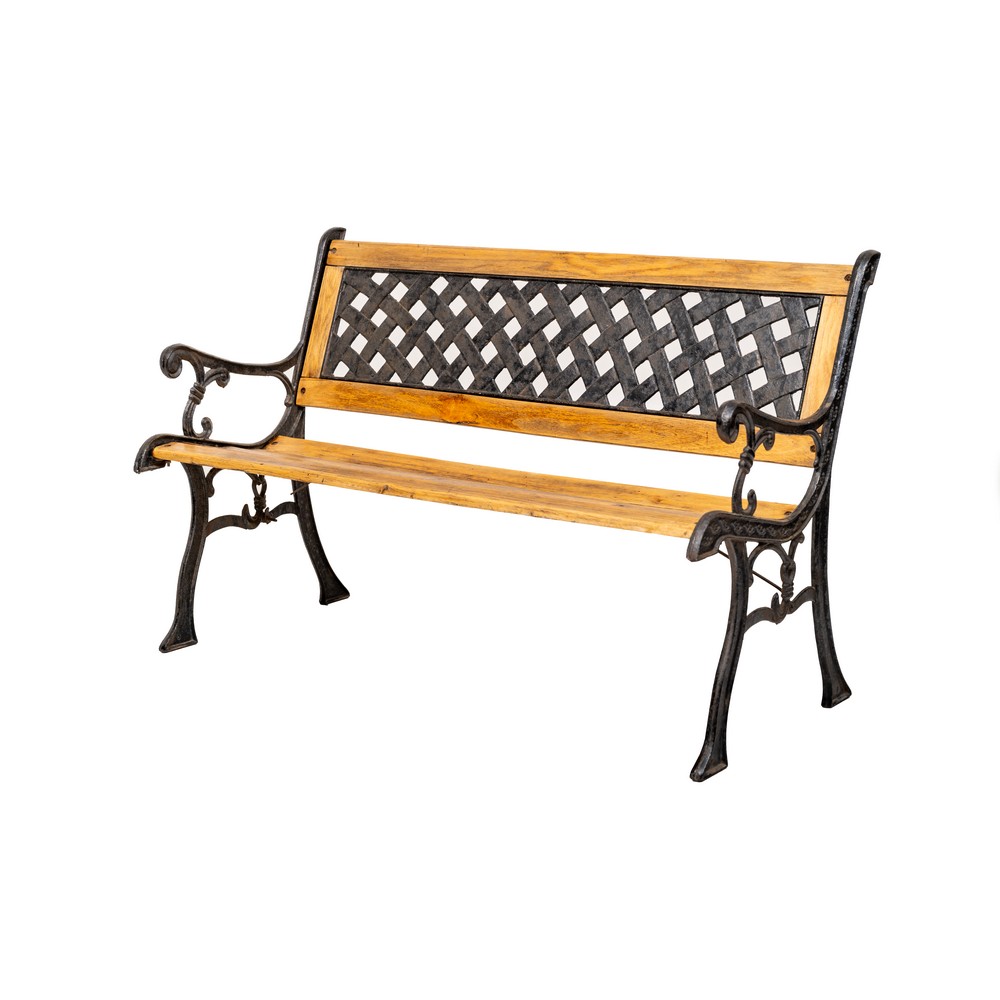 in ferro e legno composto da divanetto, due poltrone e tavolino.