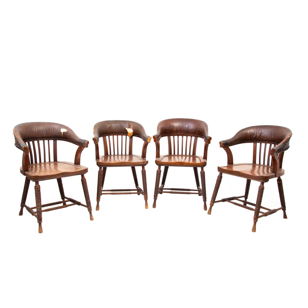 QUATTRO POLTRONE a pozzetto in legno di mogano con spalliera in mogano.