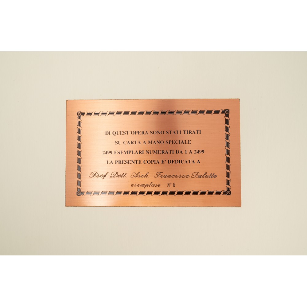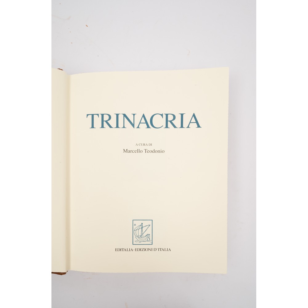 Trinacria, Editalia - Edizioni d’Italia - MCMXCVI. A cura e presentazione di Marcello Teodonio. In folio. Stampata su carta speciale delle Cartiere Miliani Fabriano. Rilegatura, custodia in pelle di vitello, con concia vegetale al sego, tamponata a mano all'anilina e impressioni in oro zecchino della ditta Antinori di Roma. lo sbalzo della copertina in pelle primo fiore è dello scultore Mario Picchi. Esemplare n. 6 / 2499. Il Regno di Trinacria sorge tra il 1282, anno di incoronazione di Pietro III di Aragona e il 1302 anno della pace di Caltabellotta, quando, a conclusione della prima fase della guerra dei Vespri siciliani, il Regno di Sicilia fu ufficialmente diviso in due parti: l'Isola di Sicilia denominata ufficialmente regno di Trinacria e comunemente Regno di Sicilia. La parte continentale assumeva invece la denominazione ufficiale di Regno di Sicilia citeriore più comunemente noto come Regno di Napoli, con re Carlo II d'Angiò. Il nome "Trinacria" fu scelto in onore dell'antico simbolo dell'isola, la Triscele ( o Triskele).