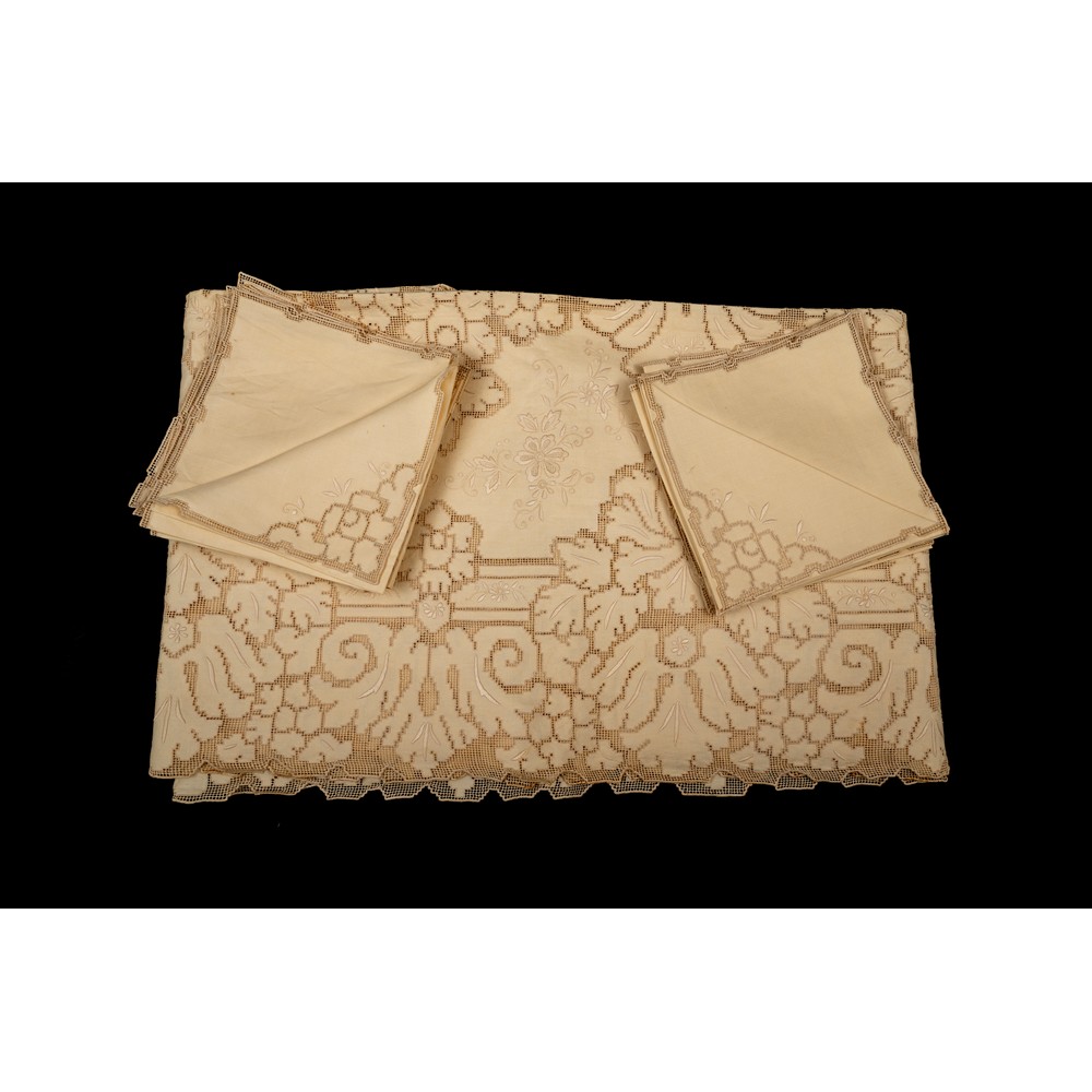 TOVAGLIA RETTANGOLARE IN LINO CON DODICI TOVAGLIOLI