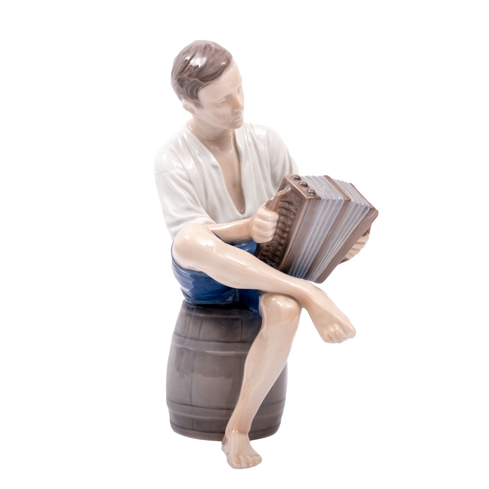 SCULTURA in porcellana Copenaghen raffigurante ragazzo con fisarmonica.