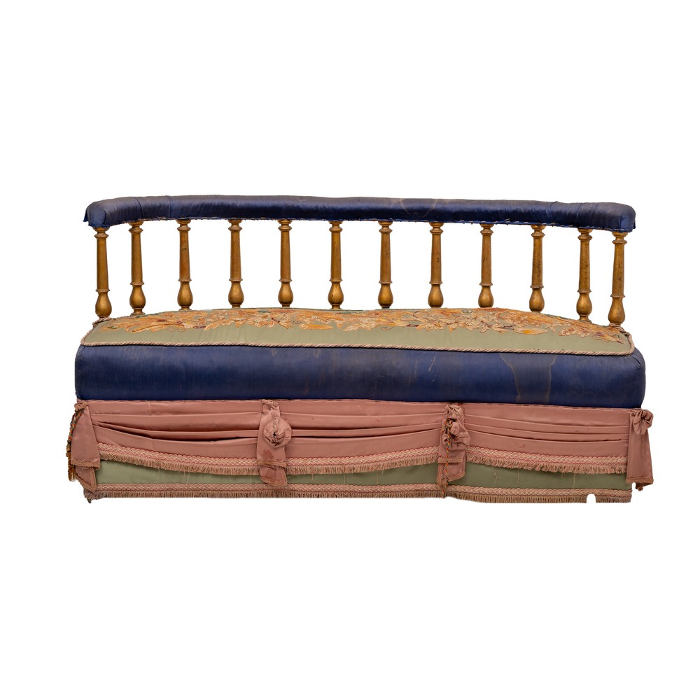 DIVANETTO Liberty a balconcino con tessuto ricamato.