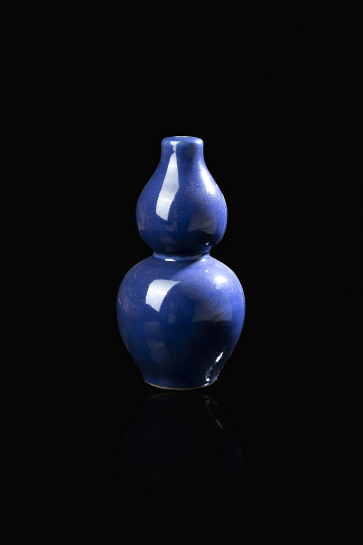 Vaso a doppia zucca in porcellana monocroma blu notte, Cina, dinastia Qing, XIX secolo.