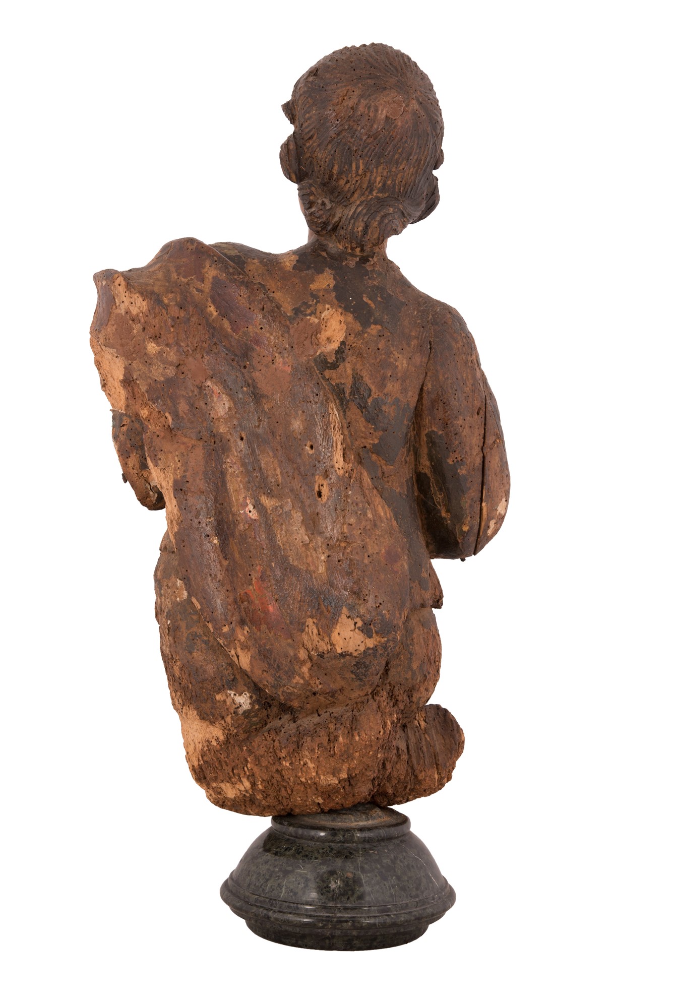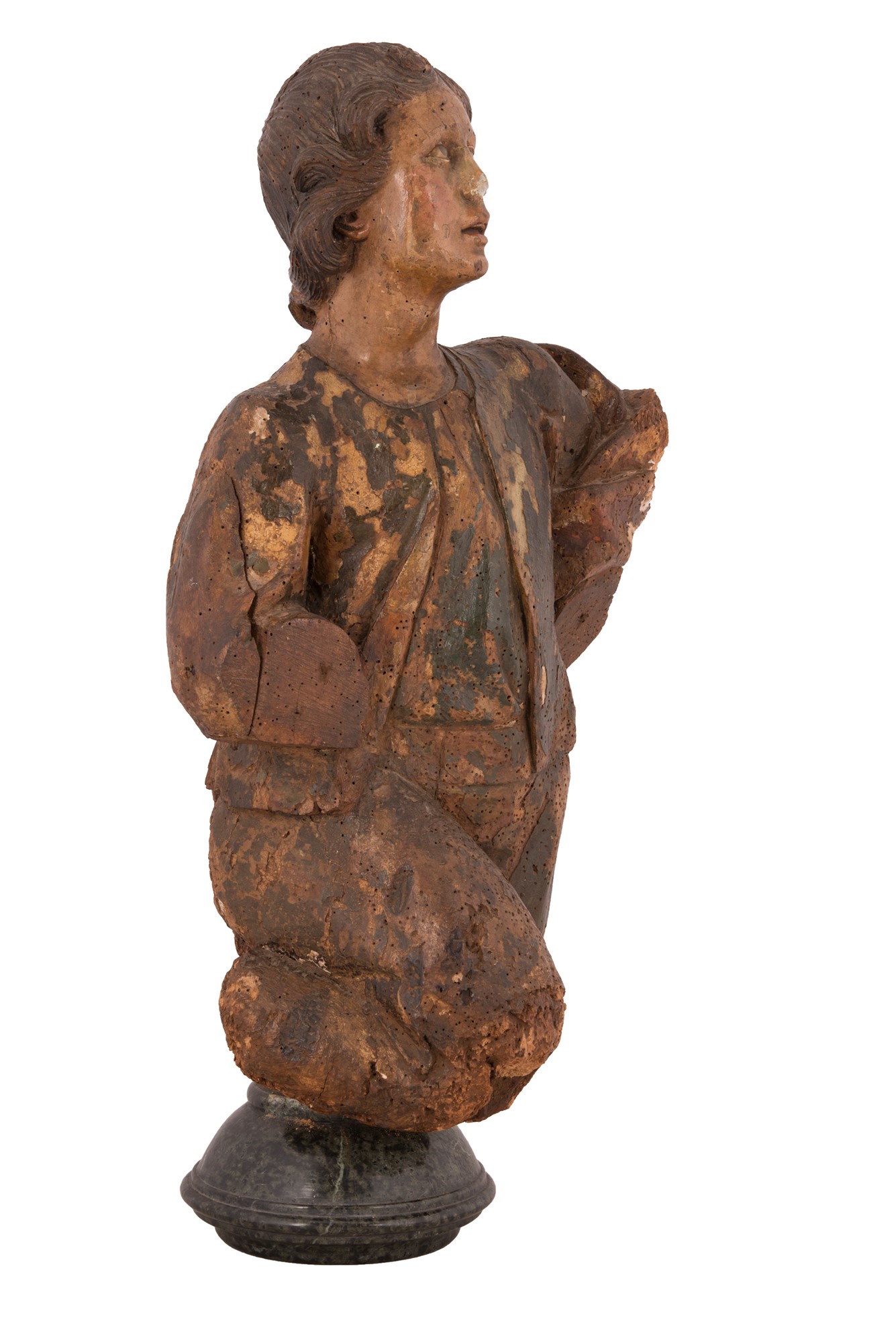 Scultura in legno dipinto raffigurante patrizio adorante XVII secolo