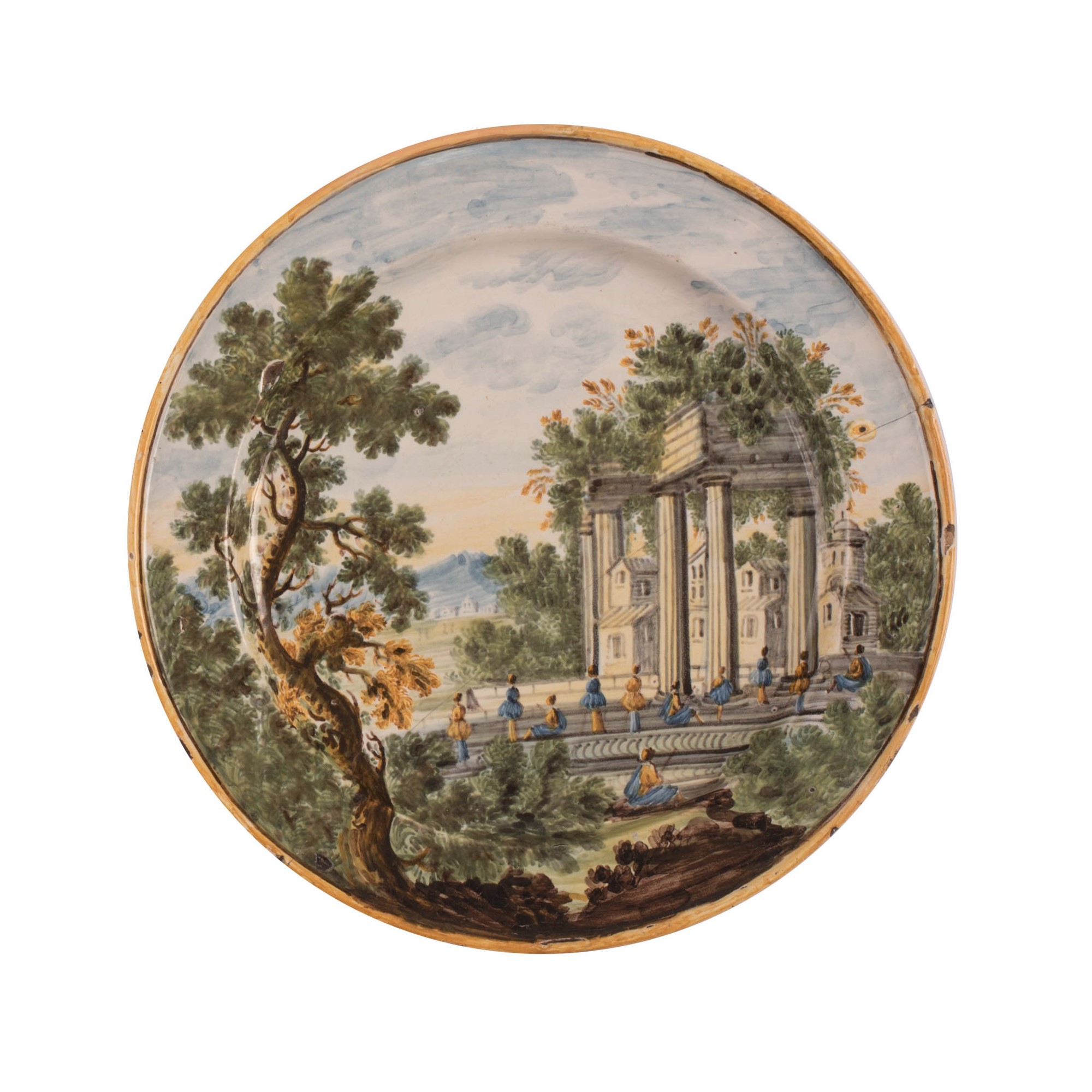 Piatto in ceramica Castelli decorato in policromia XVIII secolo