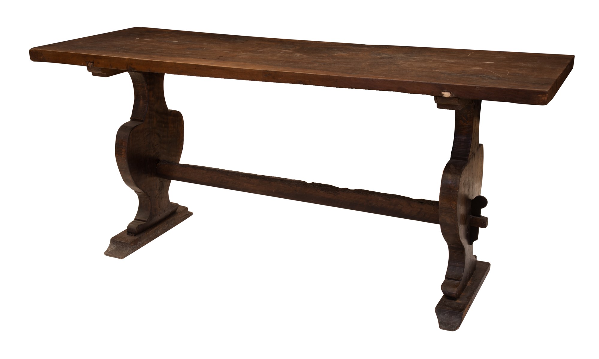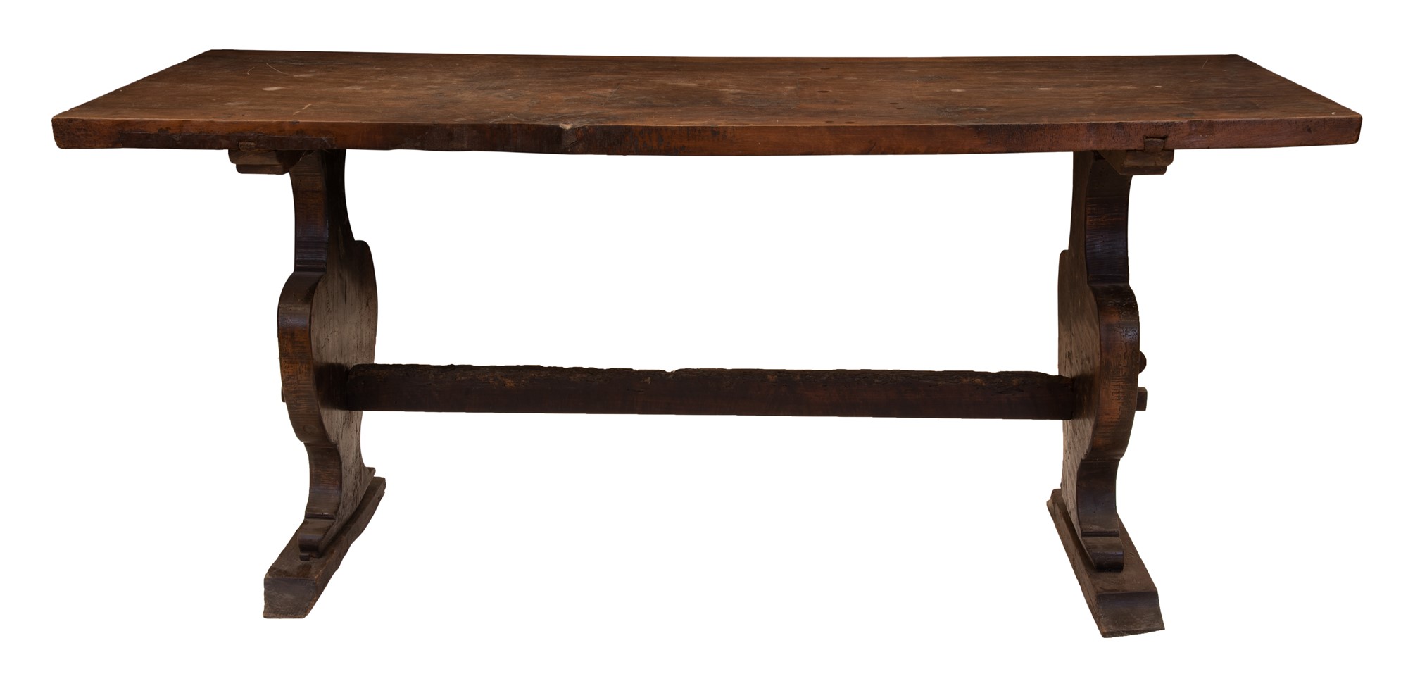 Tavolo fratino in noce con gambe ad asso di coppe. Centro Italia. XVI secolo